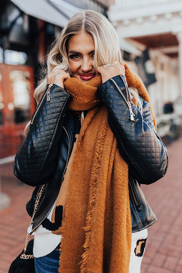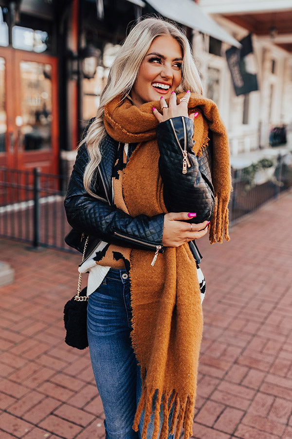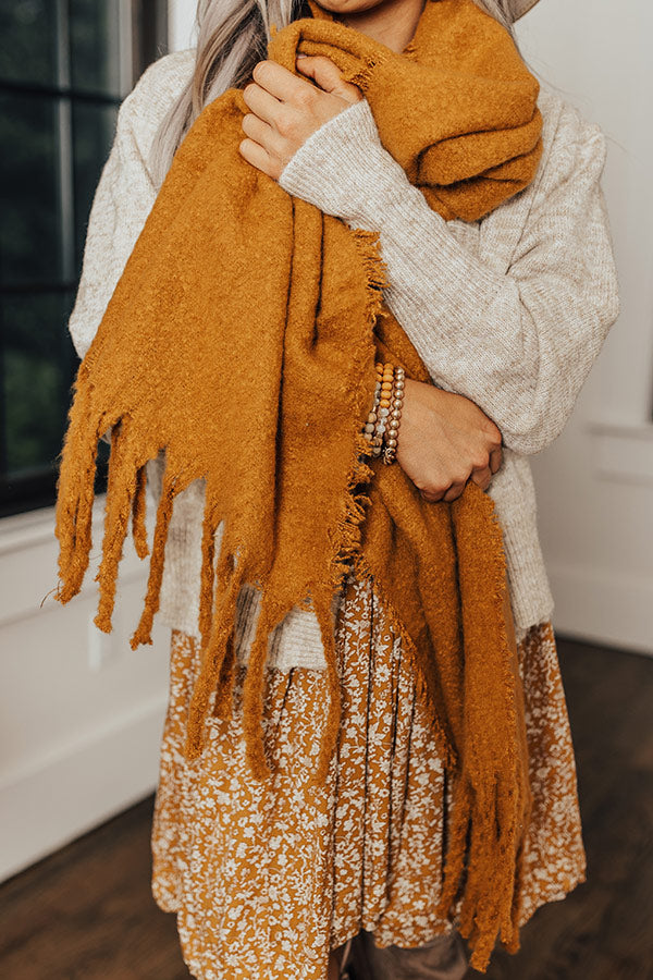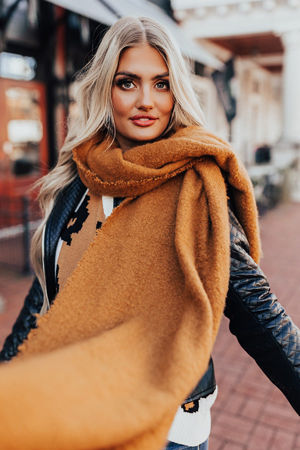 - Wrap yourself in warmth and style with this adorable camel colored scarf!