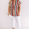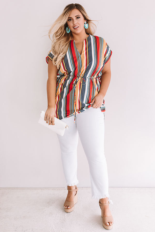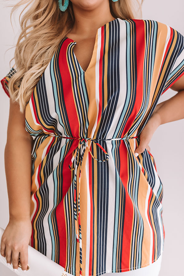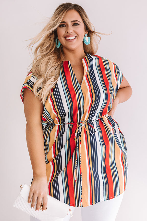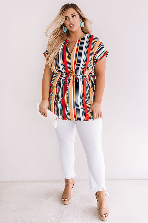 Plus Size - Your summer style will be a hot "tropic" of conversation when you wear this orchid tunic with its vibrant striped pattern and tied waist! Wear with some white skinny jeans and nude wedges for a sophisticated and bold outfit! Measurements