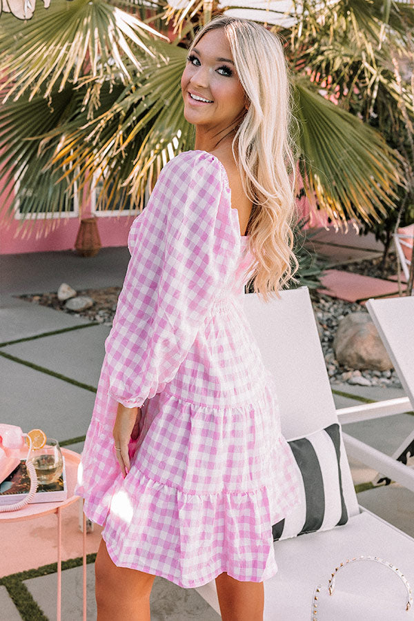 Our fave new dress just dropped! The adorable 'Ice Cream Cutie' dress features lightweight material patterned with a pink and white gingham print, a ruched center bodice with a smocked back and flirty neckline, loose long sleeves that can be worn on or off shoulder, and a relaxed tiered silhouette that falls into a straight mid-thigh length hemline!