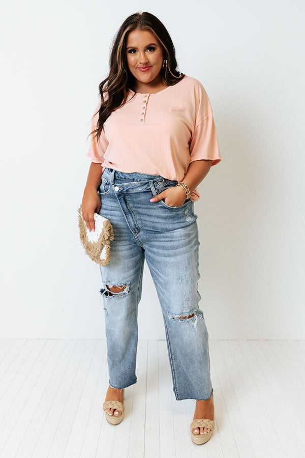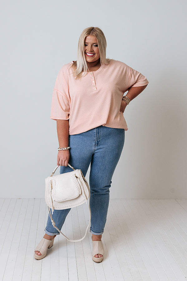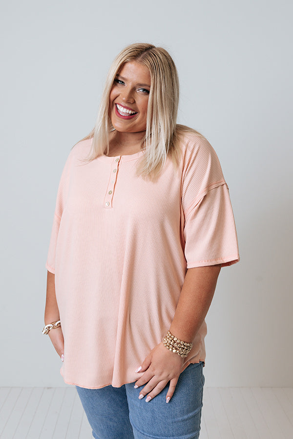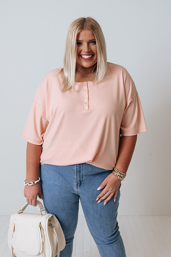 Plus Size - Imagine the best OOTD ever and then put on this basic light peach hued shift top to achieve it! This versatile piece featuring soft lightweight and flowy material a button up bodice with a rounded neckline, short loose sleeves, and a slouched silhouette that ends in a straight hemline!