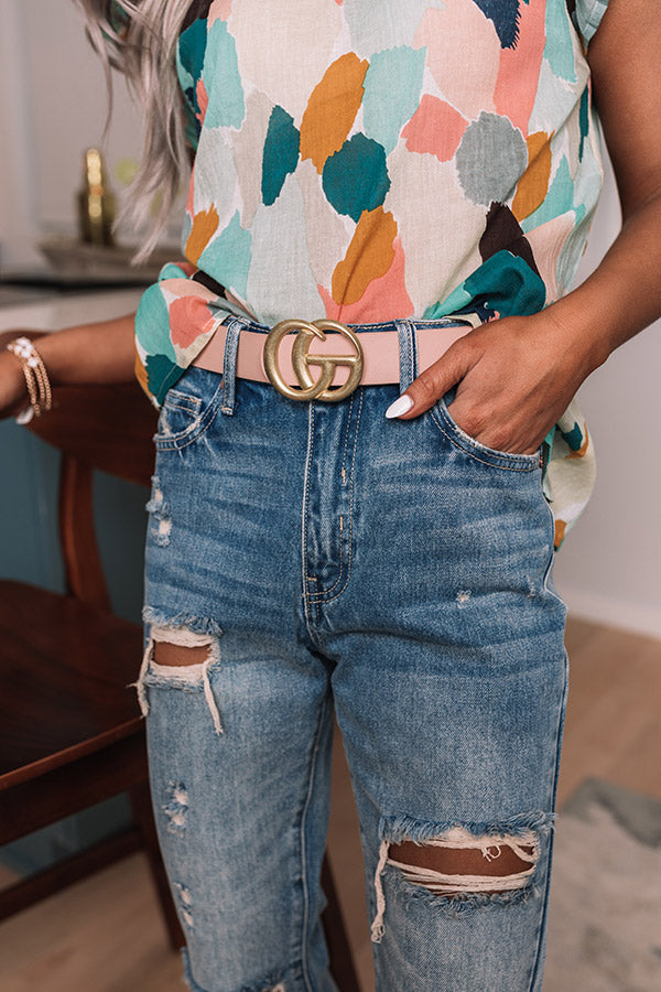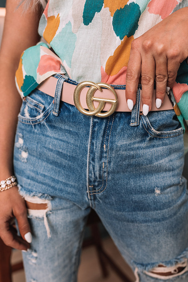 You will be impeccable dressed when you upgrade your OOTD with this chic belt featuring a bold latte colored strap and a unique gold buckle!