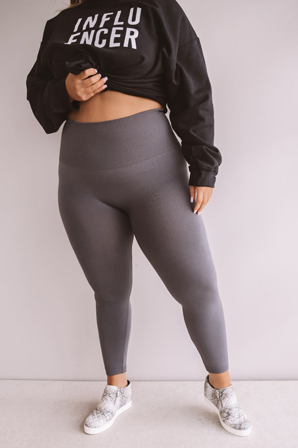 In My Element High Waist Fleece Legging In Charcoal Curves