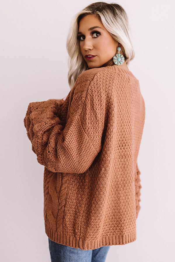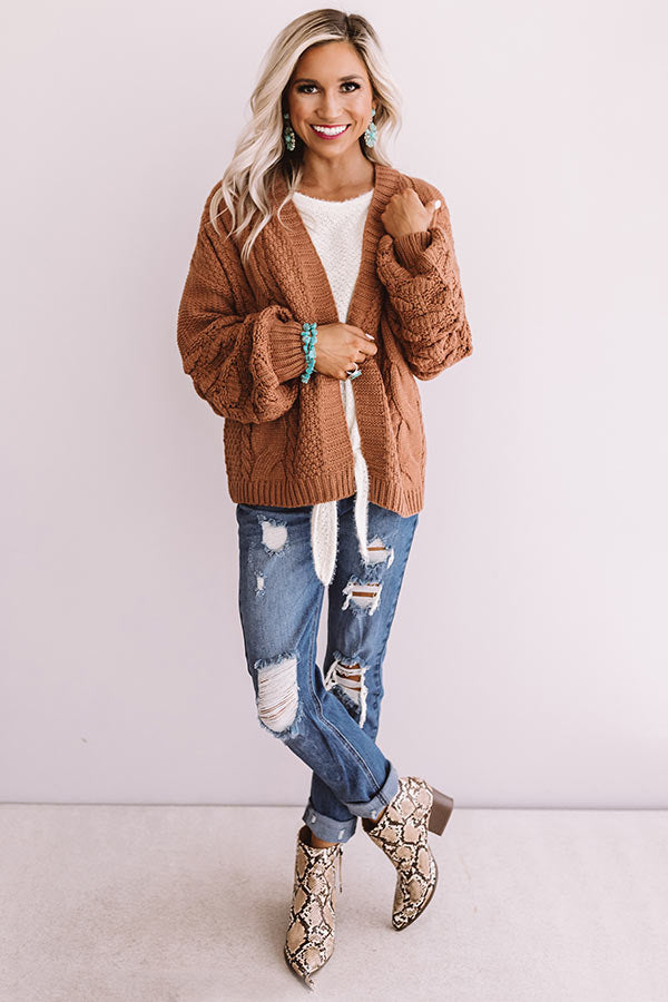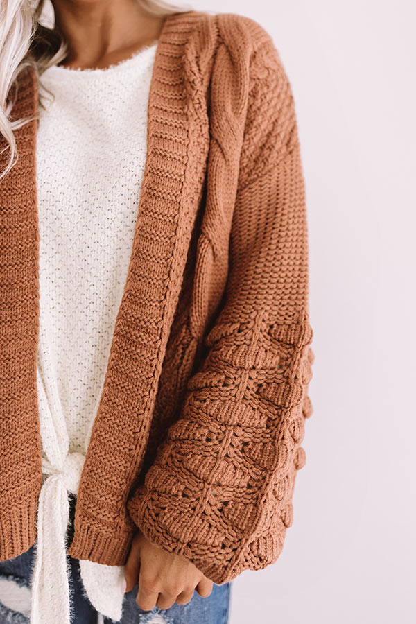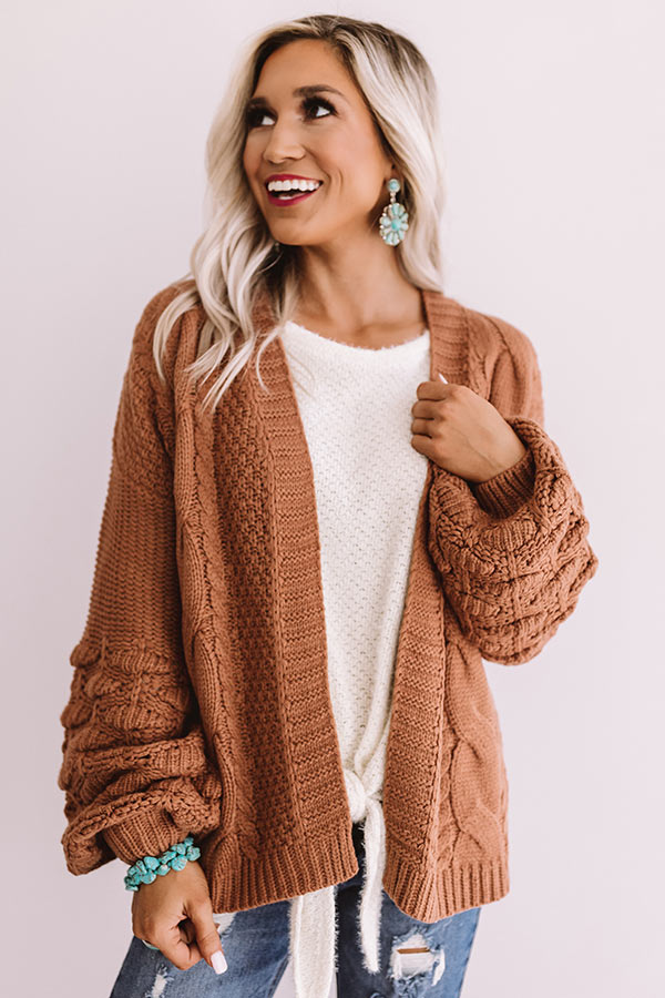 Treat yourself to this rustic rose cardigan "in the KNIT of" time for fall with its warm loose knit material, oversized bishop sleeves with fitted cuffs and a large bubble texture, straight hemline, and an open front silhouette with ribbed trim! You can style this versatile piece with just about anything from a basic tank to a sweater, jeans to dresses, wedges to sandals, clutches to totes, and hats to earrings! Measurements