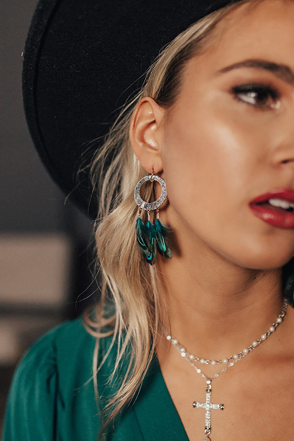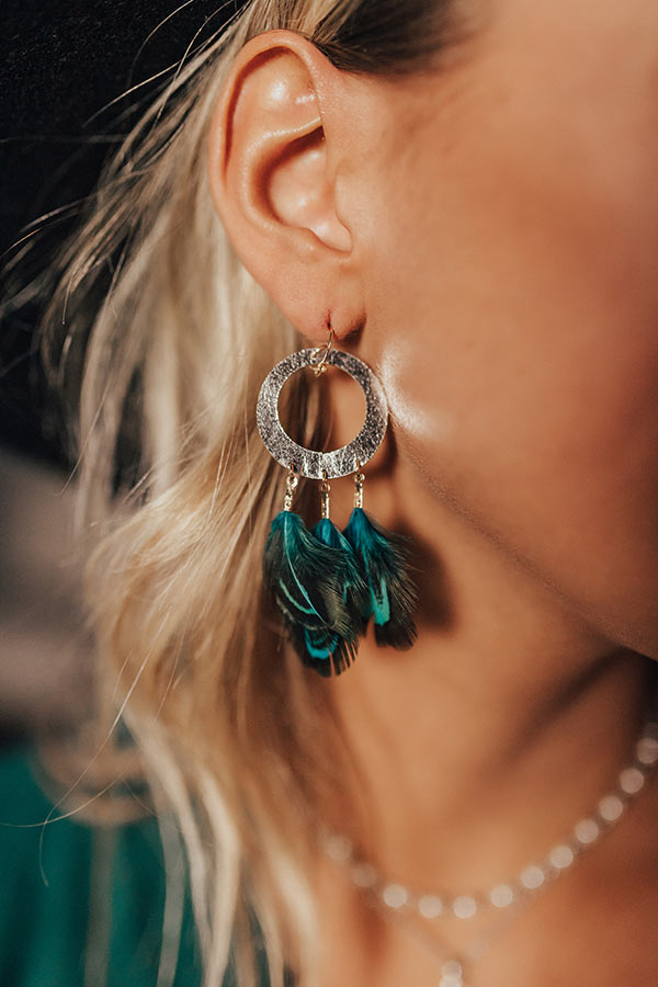 Happiness is wearing jewelry, so this holiday season treat yourself to our "In The Mix" statement earrings featuring textured silver hoops with three dangling jade hued feathers!
