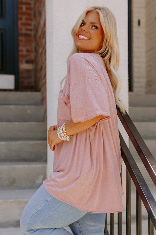 Keep your look simple but stylish in our blush plus size 'In This Together Shift Tee' featuring soft lightweight material, a rounded neckline, loose short sleeves, a single accent chest pocket, and a slouched silhouette that ends in a straight hemline!