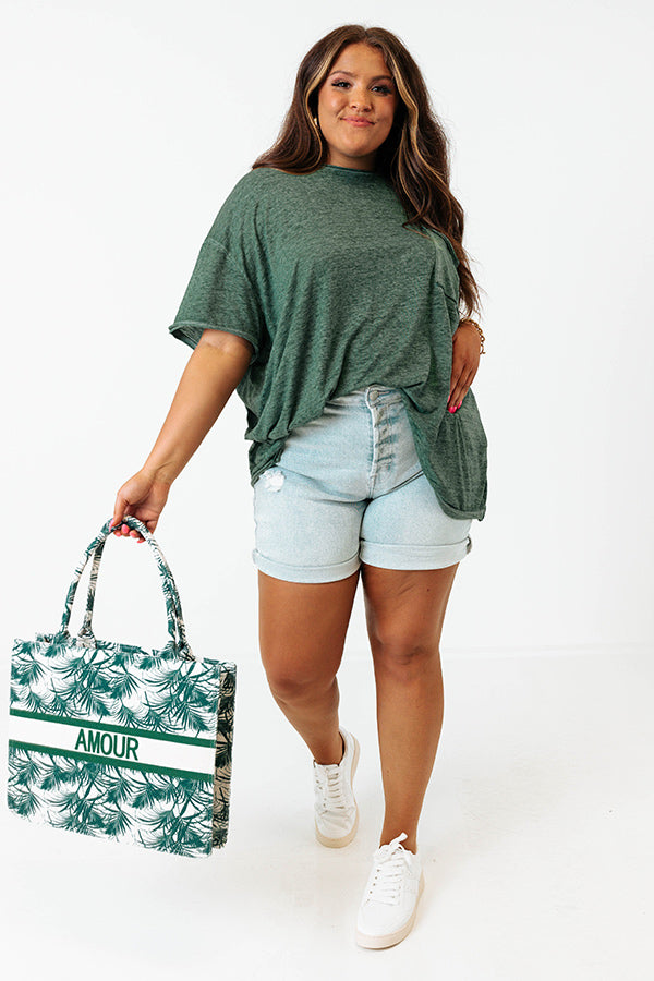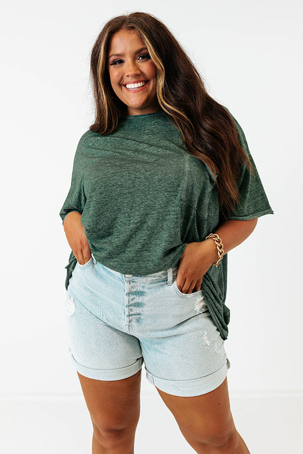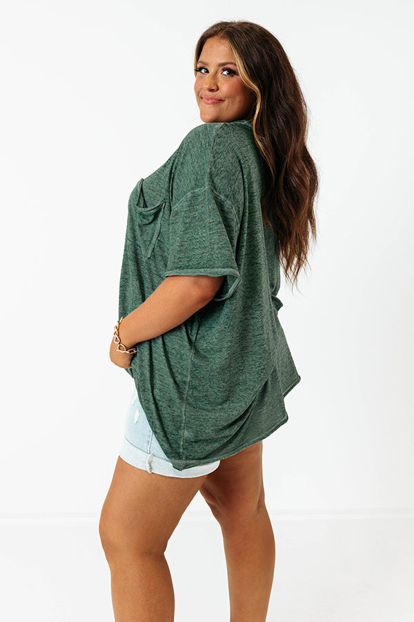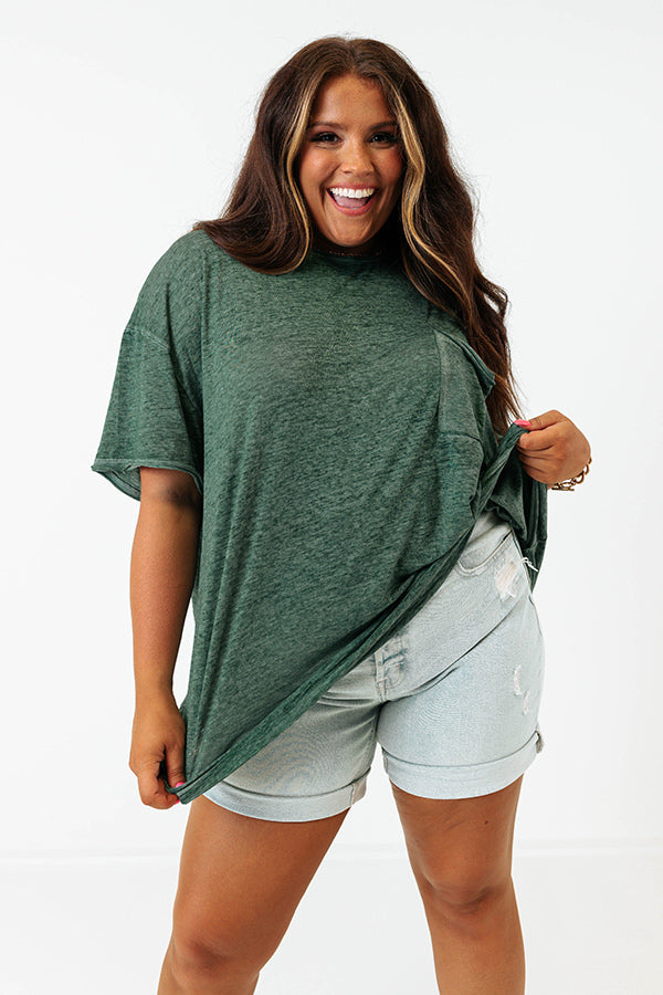 Keep your look simple but stylish in our hunter green plus size 'In This Together Shift Tee' featuring soft lightweight material, a rounded neckline, loose short sleeves, a single accent chest pocket, and a slouched silhouette that ends in a straight hemline!