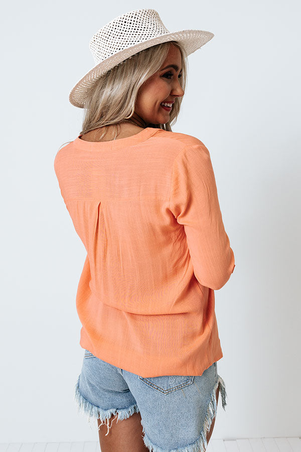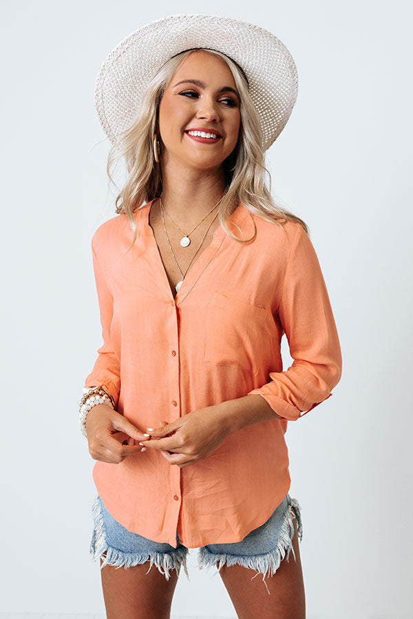 We have no doubt you will look sophisticated but stylish in this infamous coral hued top featuring lightweight flowy material, a button up front with a v-cut neckline, long loose sleeves with roll-tab cuffs, and a slouched silhouette that falls into a rounded hemline! Measurements