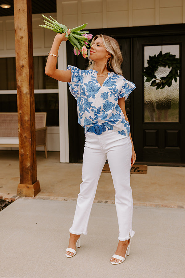 – Ultra lightweight, unlined material patterned with a blue hued floral print