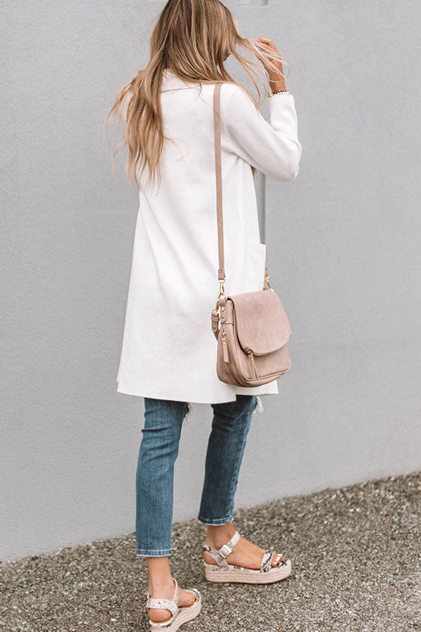 This ivory colored cardigan is sure to be an "instant classic" with its warm heavy material, collared neckline, fitted long sleeves, two accent side pockets, and open flap silhouette that falls into a knee-length straight hemline! You can style this versatile piece with just about anything from a basic tank to a sweater, jeans to dresses, wedges to sandals, clutches to totes, and hats to earrings! Measurements