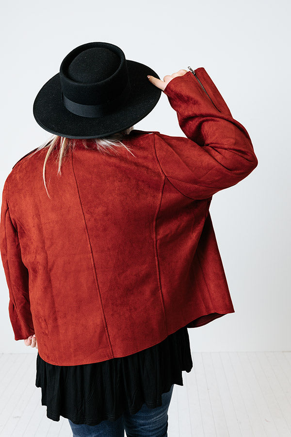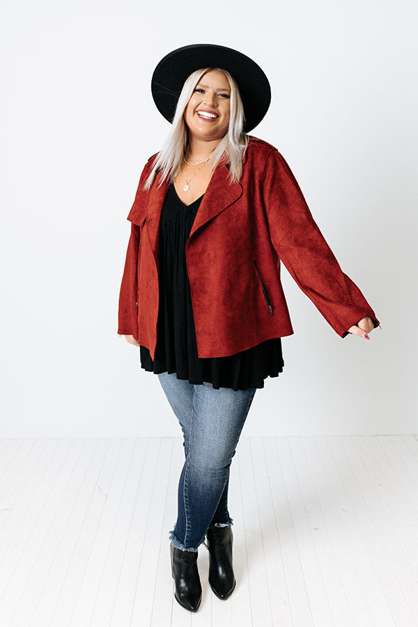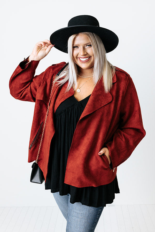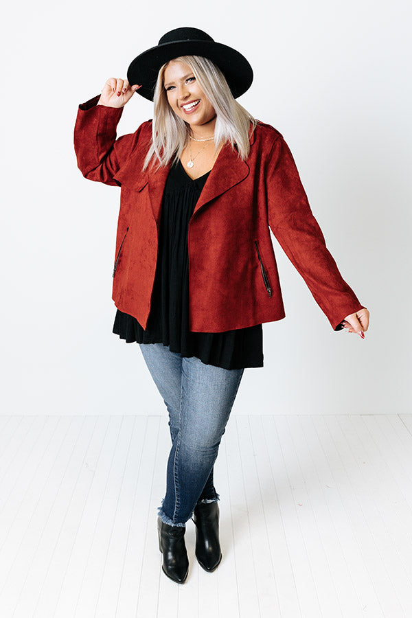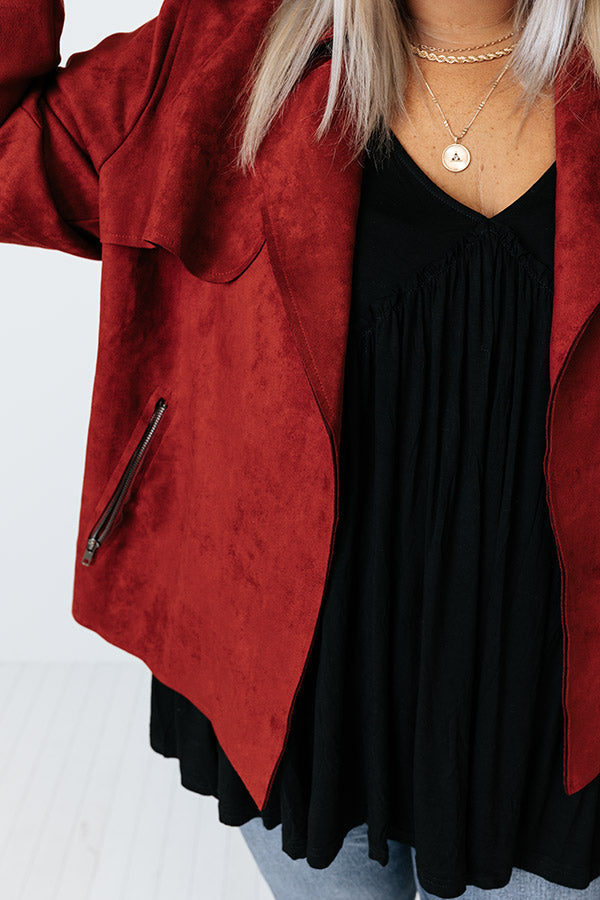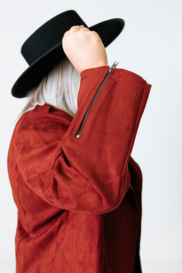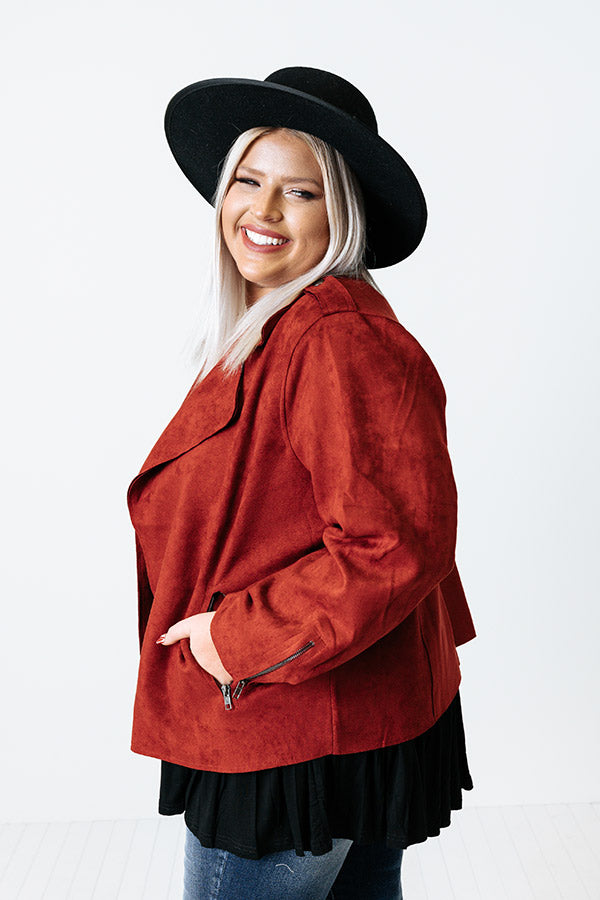 Instant Connection Faux Suede Jacket In Aurora Red Curves