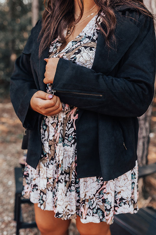 Instant Connection Faux Suede Jacket in Black Curves