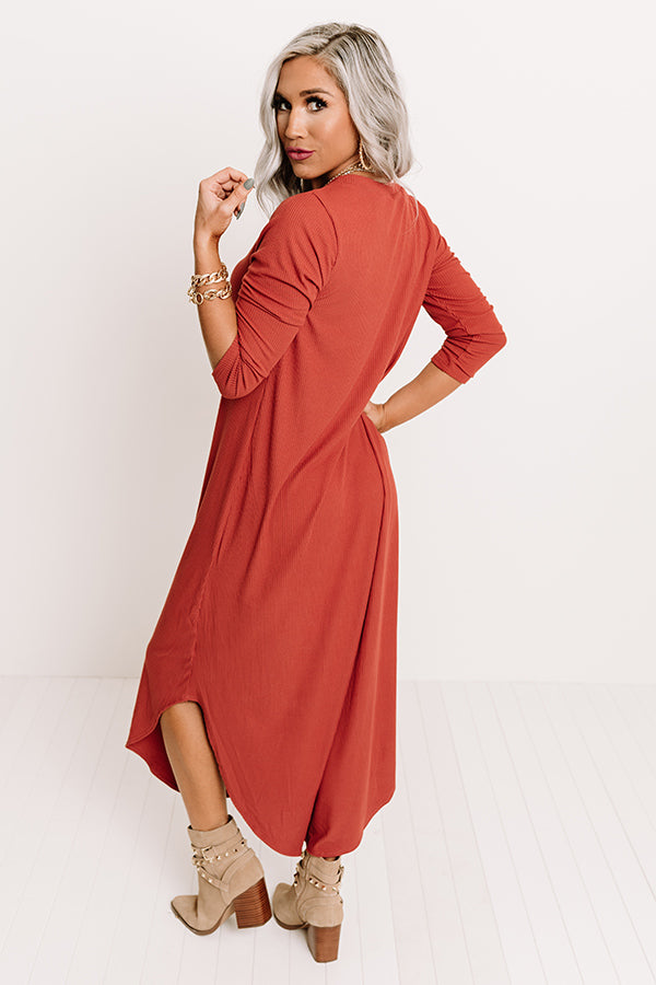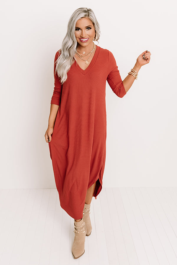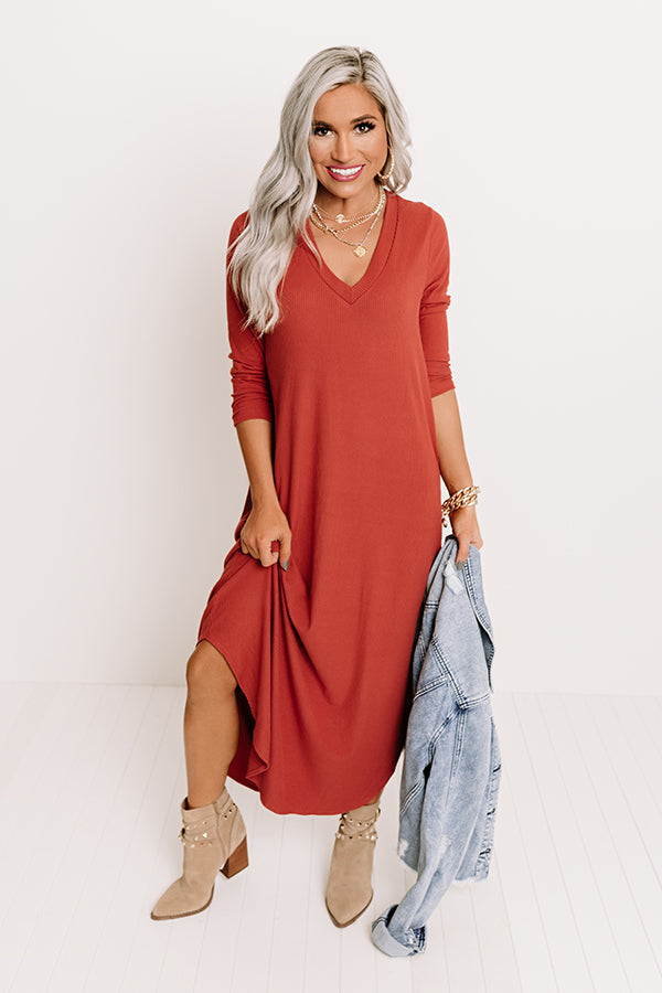 This casual rose colored midi dress is sure to be an instant obsession of yours with its lightweight flowy material, v-cut neckline, long sleeves, and ultra relaxed silhouette that cascades into a rounded mid-calf length hemline! Measurements