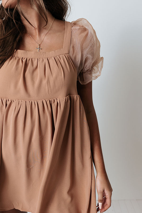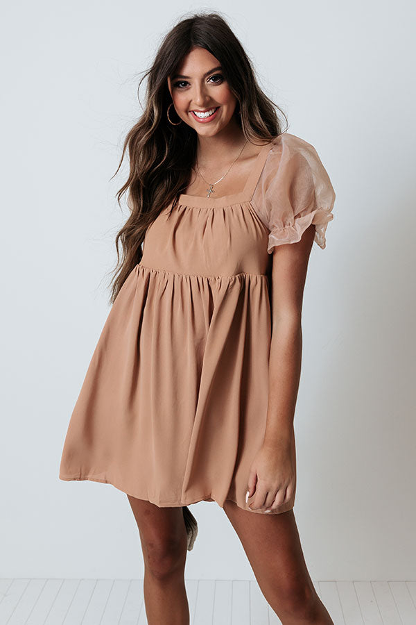 Instantly Lovestruck Babydoll Dress In Iced Mocha