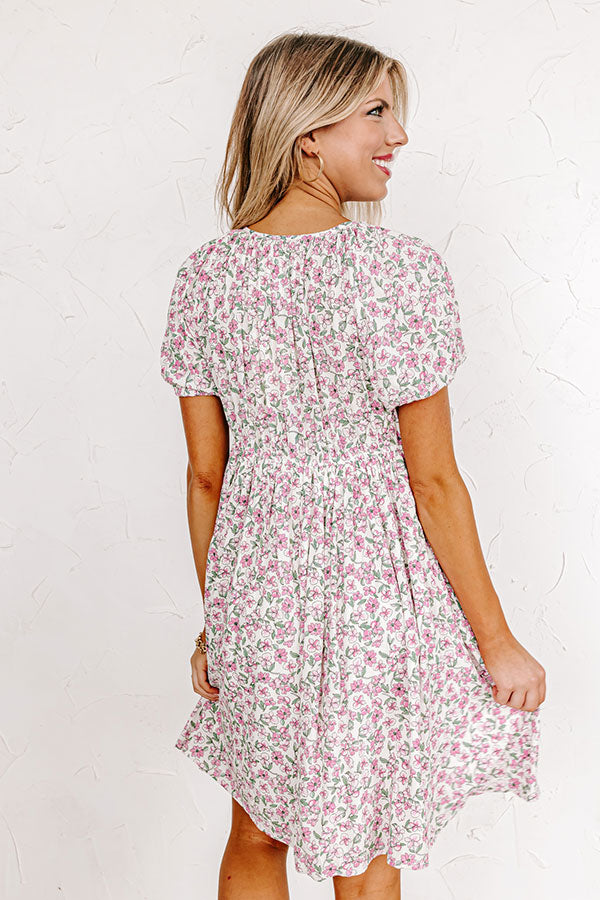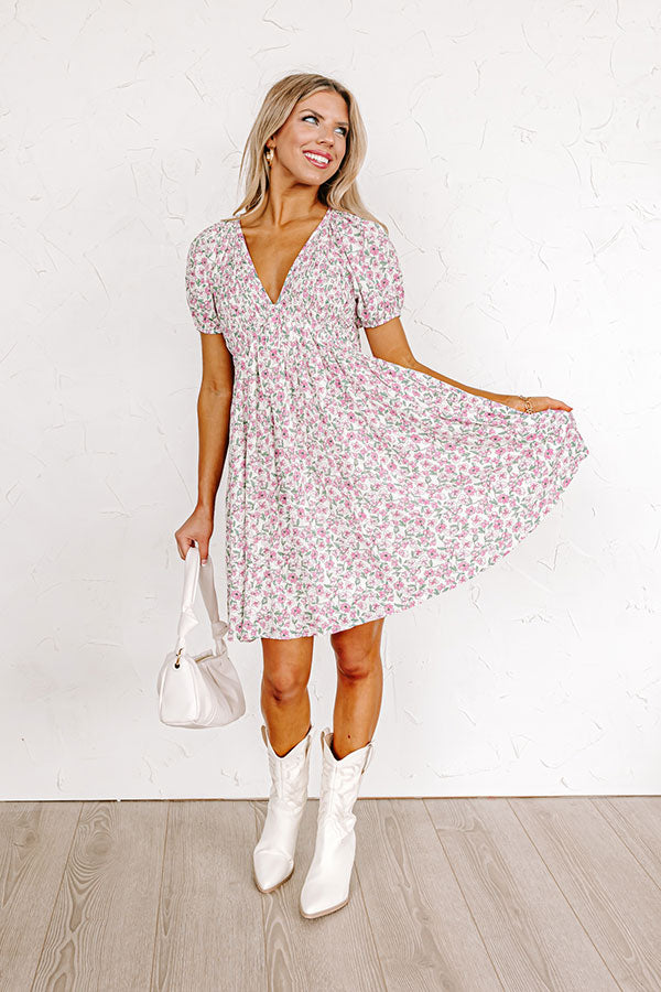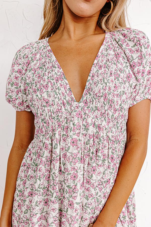 You will look like you are internet famous when you arrive with this adorable dress featuring lightweight material patterned with a pink and green floral print, a v-cut neckline, short sleeves, and a relaxed babydoll silhouette that falls into a straight mid-thigh length hemline!