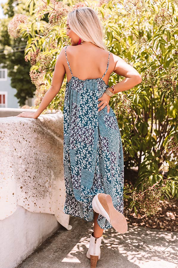 Your summer style is sure to bloom when you wear this stunning ocean blue colored midi dress featuring lightweight breezy material patterned with a cute floral print, a straight neckline with ruffled trim detailing, adjustable spaghetti straps, and an ultra relaxed silhouette that falls into a wide peplum bottom with an uneven mid-calf length hemline! We have styled this darling piece with a stone hued wedged bootie and a woven tote, but you can also wear it layered under a jean jacket with "The Jess Faux Leather Heel in Natural," our "Plans In Paris Wool Hat in Cream!" Measurements
