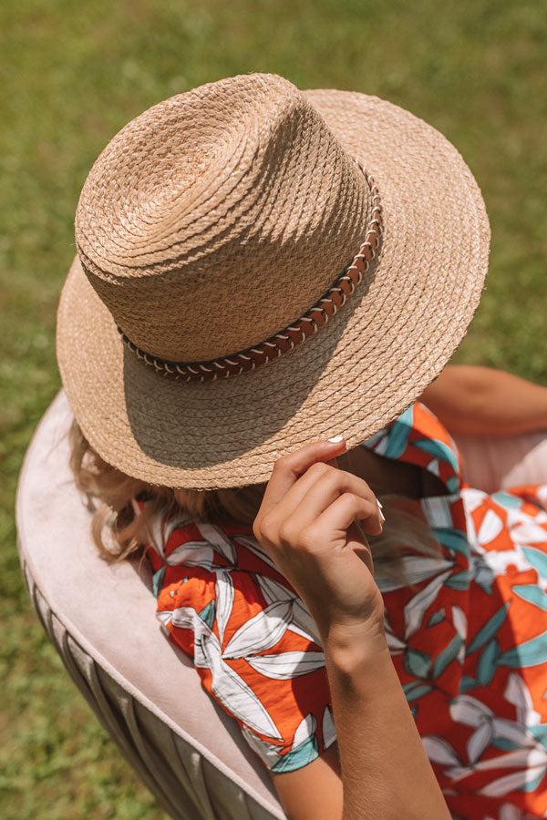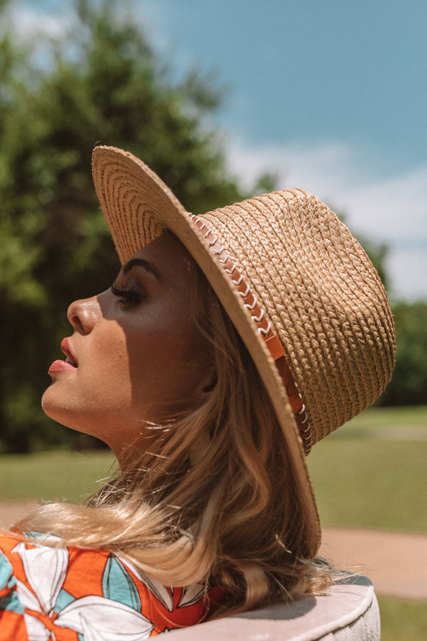 This lovely island hat will add a touch of magic to your summer wardrobe with its wide brim and a faux leather braided accent ribbon!