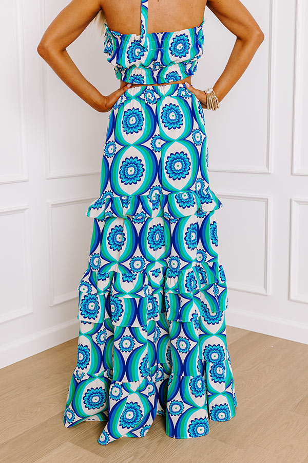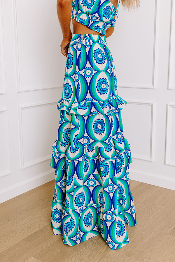 Island Oasis High Waist Floral Maxi Skirt in Royal Blue