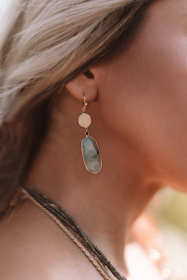 When you accessorize with these statement earrings, they are sure to be the "it factor" of you OOTD with their dangling gold circles and dark grey faux stone pendants!