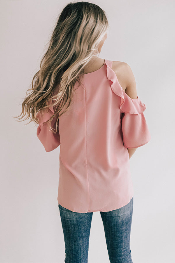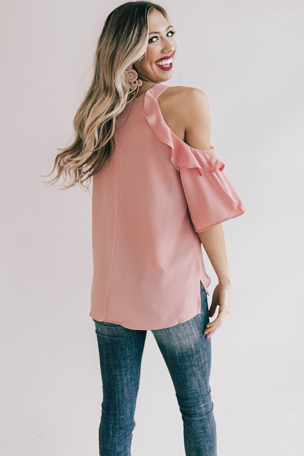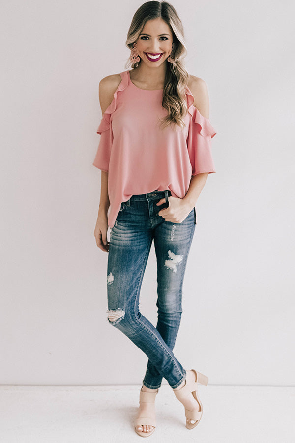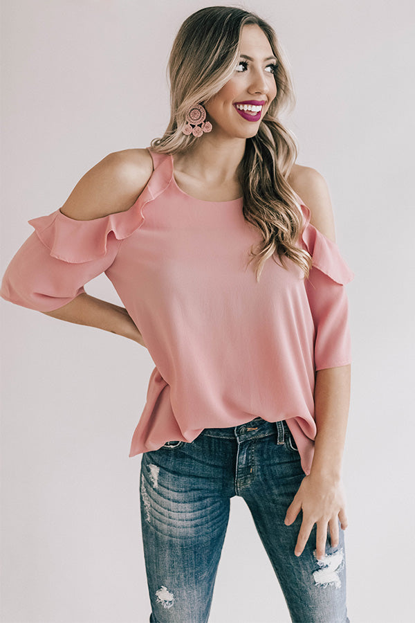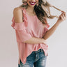 Be a bombshell in this sassy shift top! The ruffle accents make this half sleeve cold-shoulder top super fun, and its lightweight shift silhouette make this the perfect top to transition you from season to season! Pair with your favorite denim & heels for a sassy look guaranteed to steal the show!