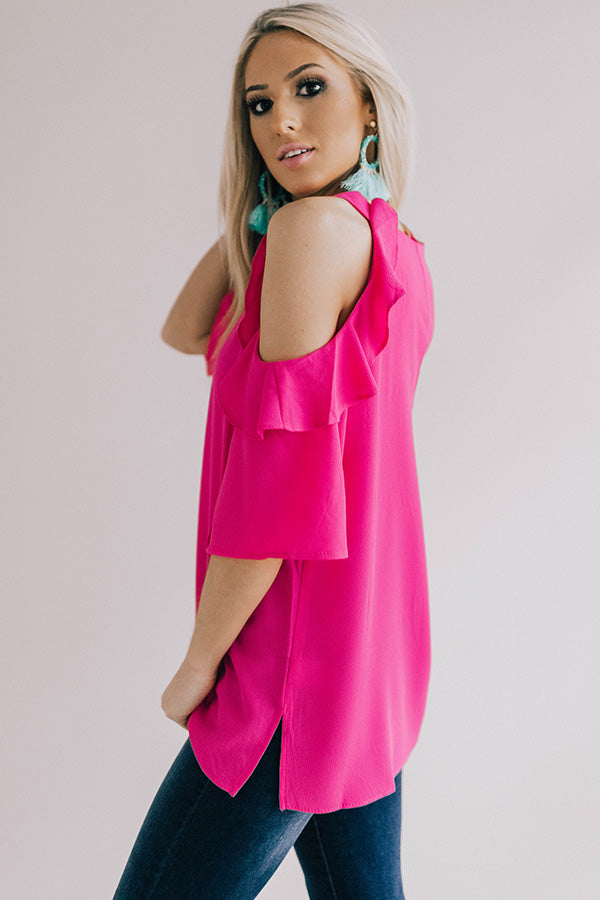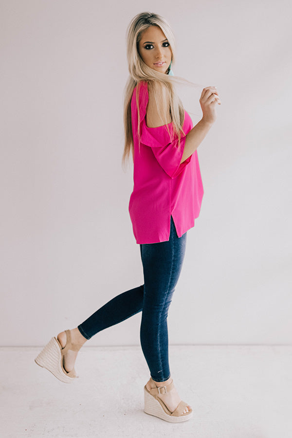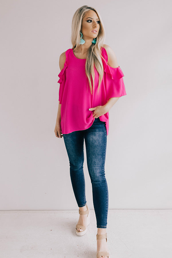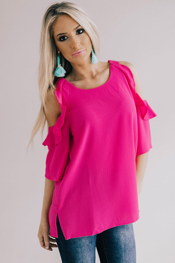 With flirty ruffled open shoulders & a relaxed shift bodice, this chic shift top is sure to become your new favorite go-to top! The "Italian Vacation Shift Top" has a round neckline, quarter-length cold-shoulder sleeves with ruffle accents & a relaxed shift bodice that you are sure to adore. Pair this top with your favorite denim & heels for a sassy look that is guaranteed to steal the show wherever you go!
