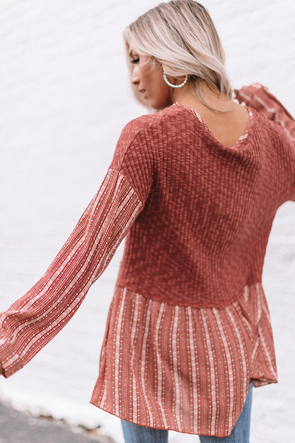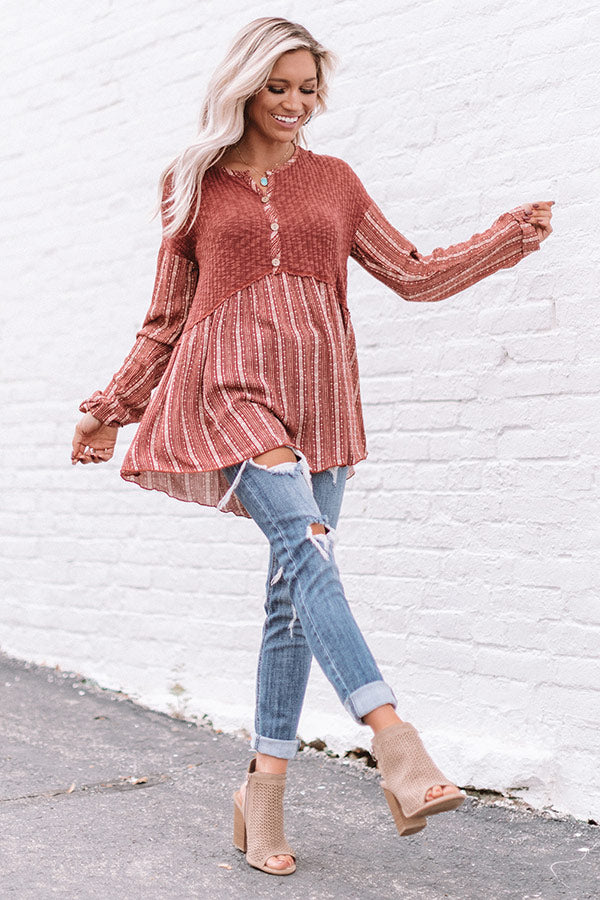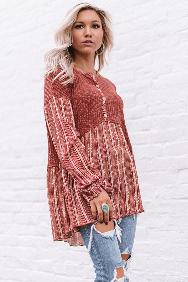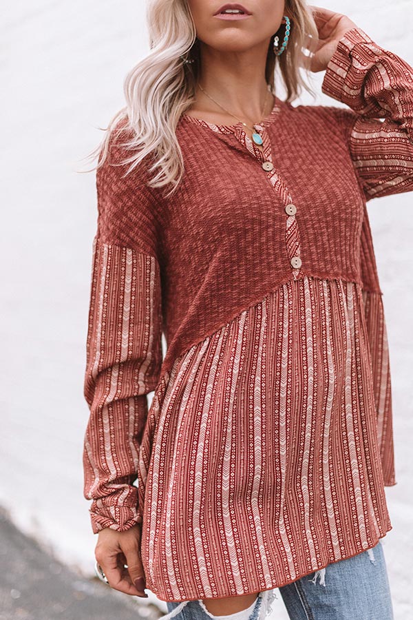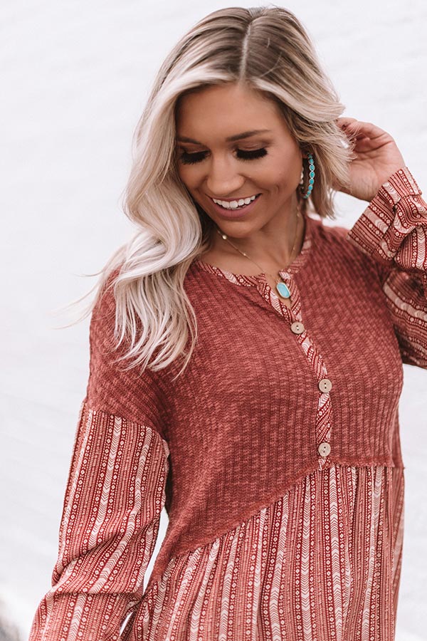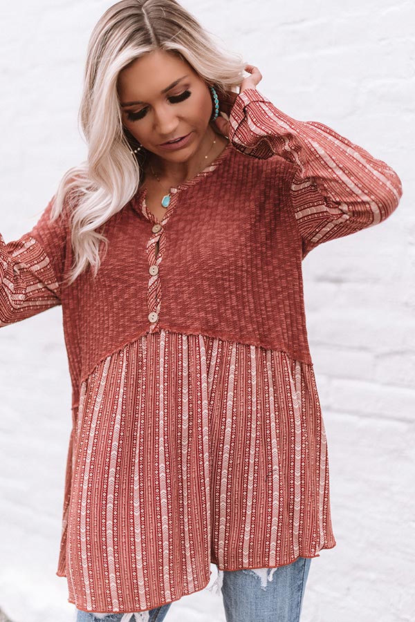 "It's fall y'all!" Which means it's time to update your cold weather wardrobe and you won't find a better addition than this adorable top featuring lightweight loose knit material, ivory aztec striped accents, a button up bodice with a high rounded neckline, long loose sleeves with rolled cuffs, and a babydoll silhouette that falls into a tunic length uneven hemline! We have styled this adorable piece with some distressed ankle skinnies, turquoise jewelry, and a neutral peep toe bootie, but you can also wear it with some charcoal flares, "The Jess Faux Suede Heel in Natural" and our "All Caught Up Headband in Ivory!" Measurements