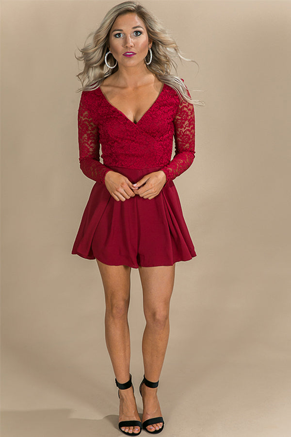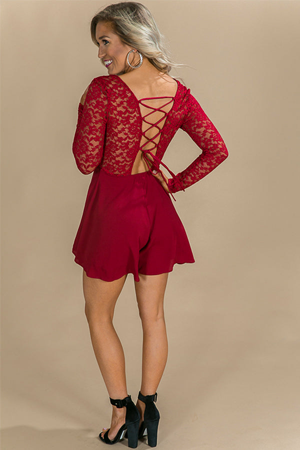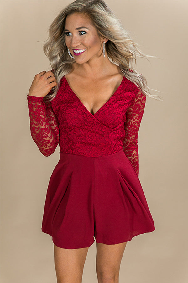 It's Fate Lace Romper in Crimson