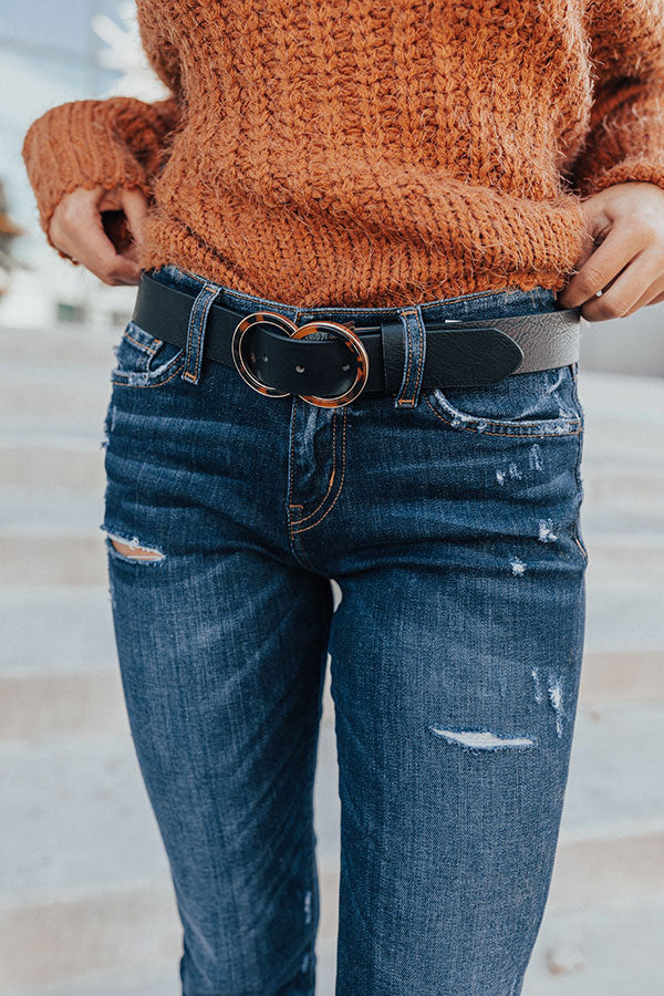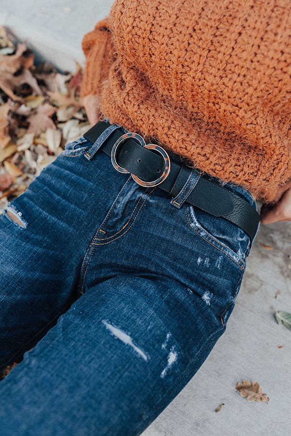 There is no better way to tie your OOTD together than with our black "I've Got Your Back" statement belt featuring a wide faux leather band with a tortoiseshell patterned two circle buckle!