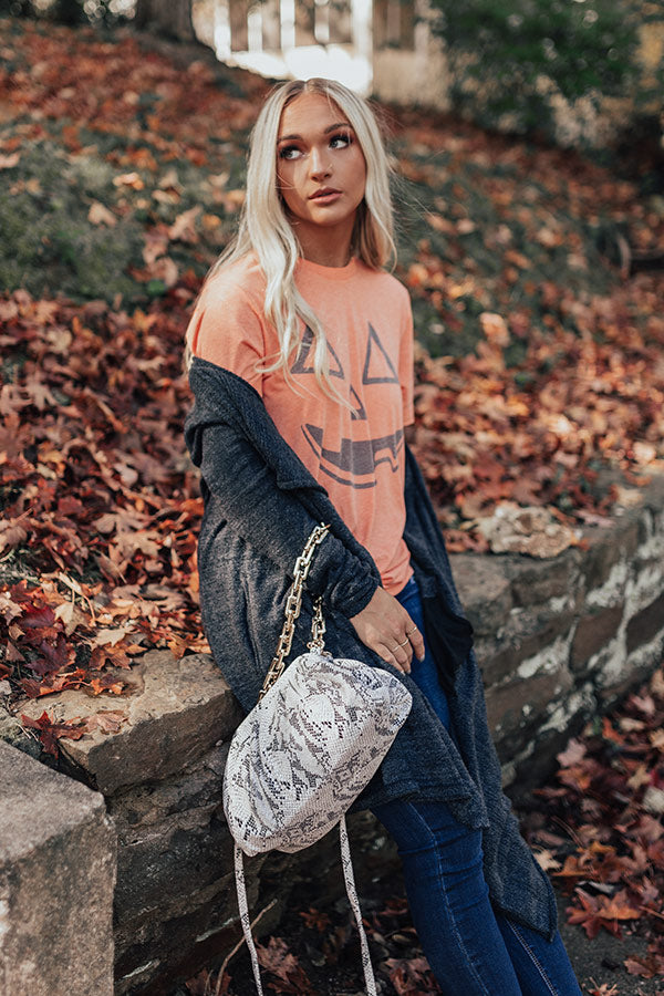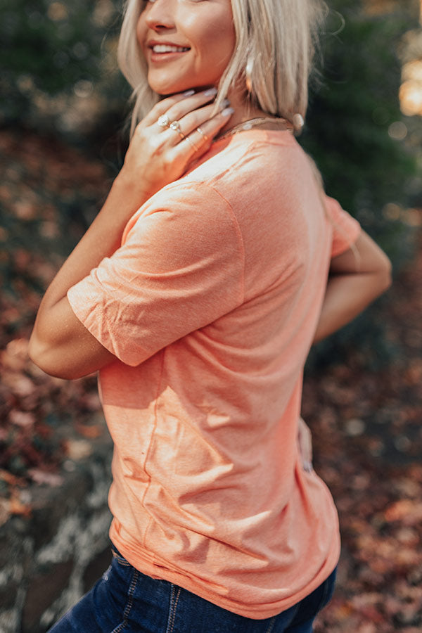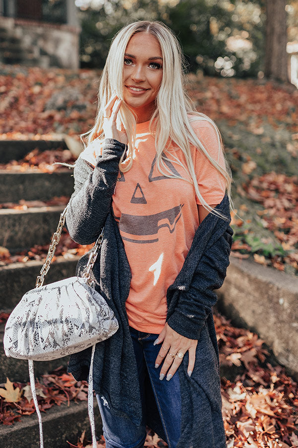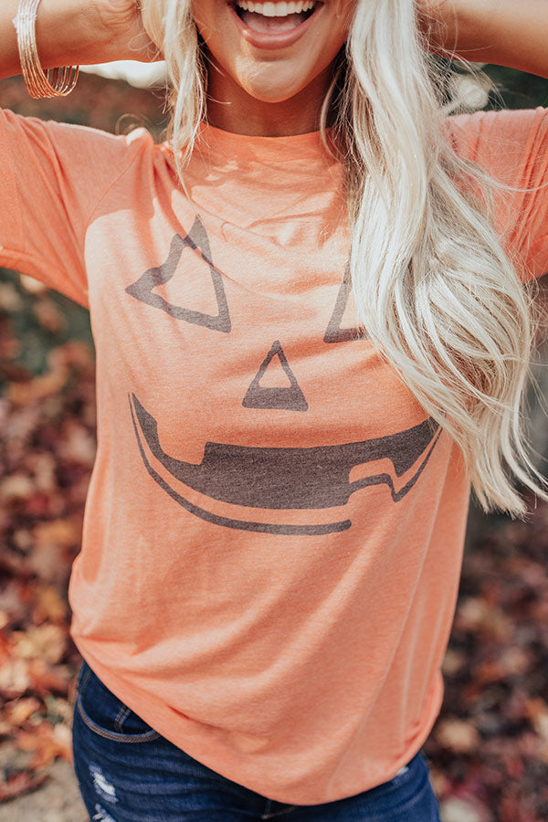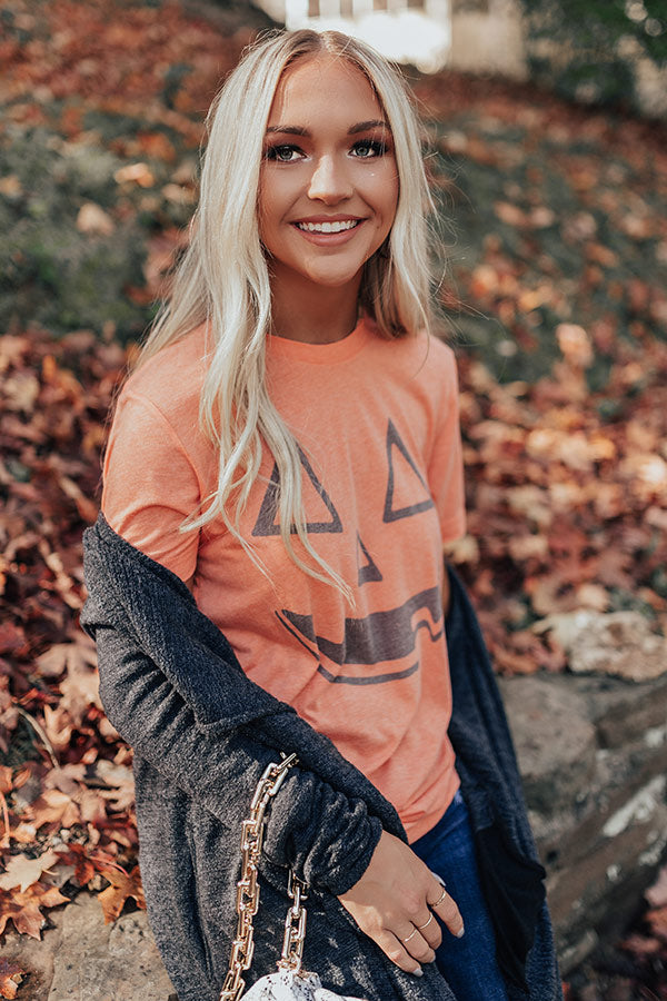 Trick or treat yourself this Halloween to our trendy light orange "Jack-O-Lantern Tee" featuring soft lightweight material, a high rounded neckline, short loose sleeves, and a relaxed silhouette that falls into a straight hemline!