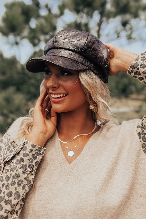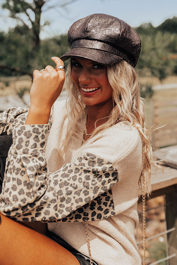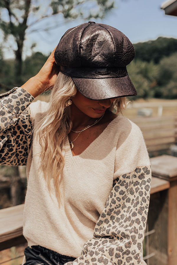 Add a groovy finish to your OOTD with our adorable black 'Jazz Club' cabbie hat featuring sleek faux leather material and a lightweight silhouette with a curved bill!