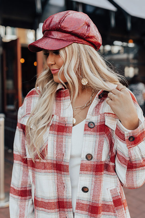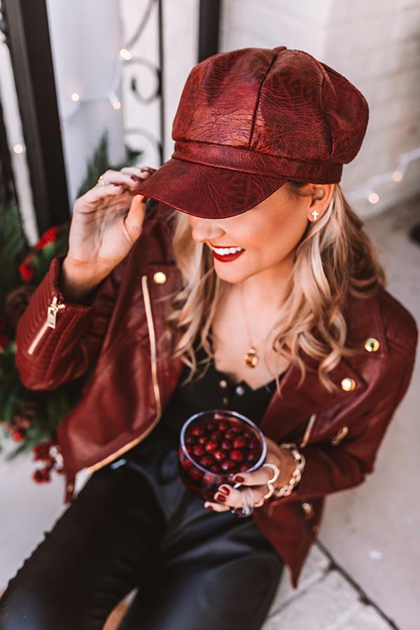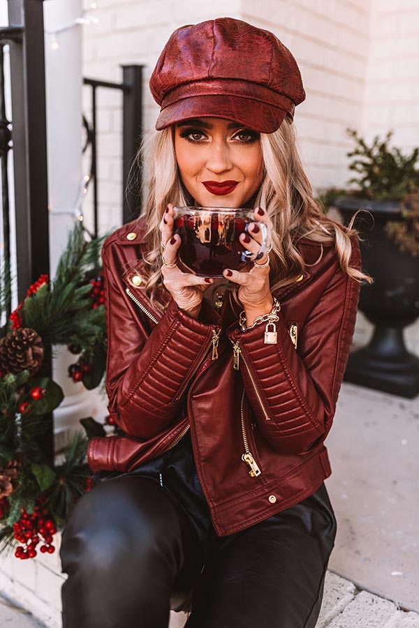 Add a groovy finish to your OOTD with our adorable wine colored 'Jazz Club' cabbie hat featuring sleek faux leather material and a lightweight silhouette with a curved bill!