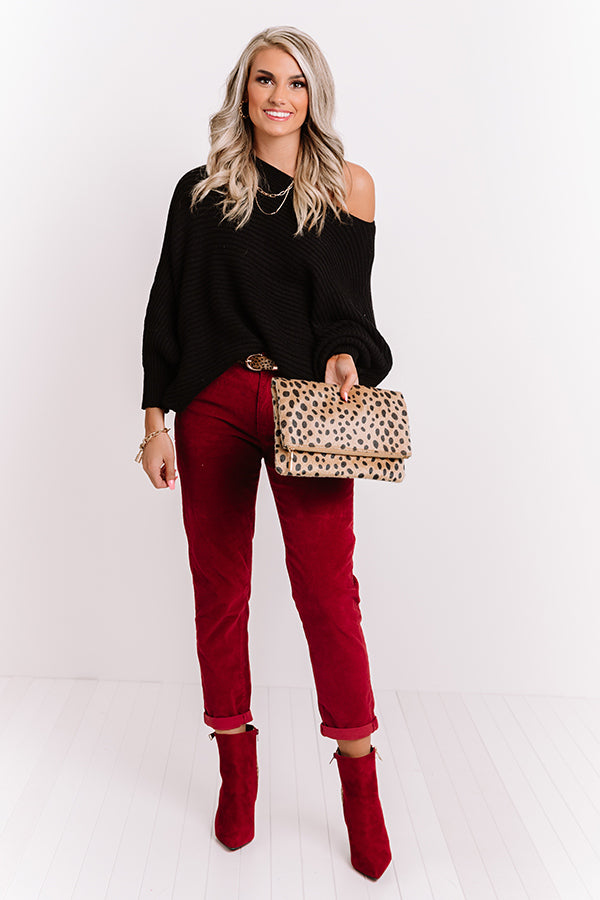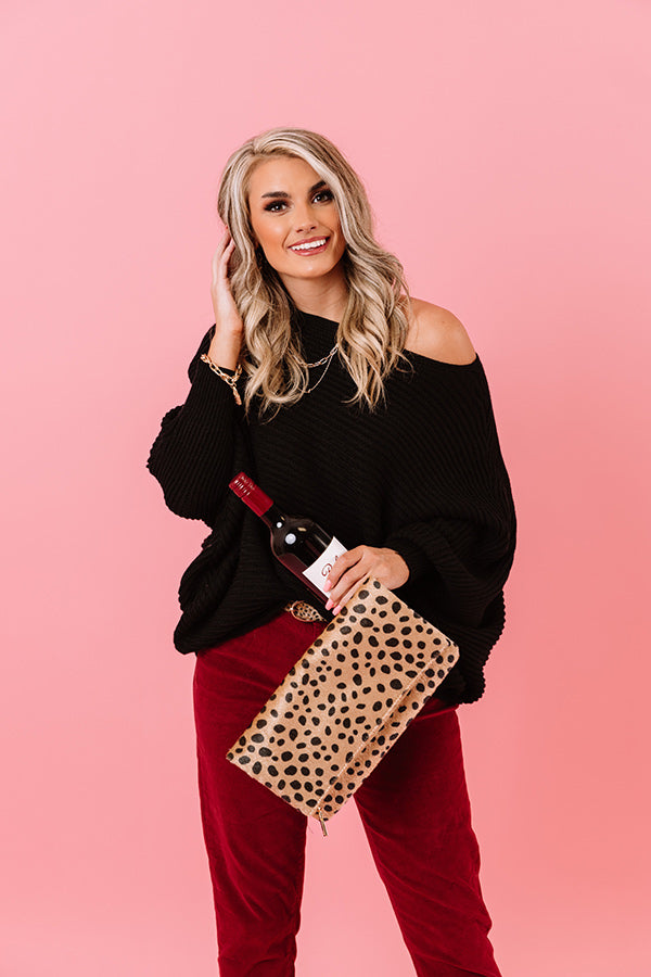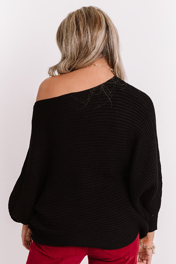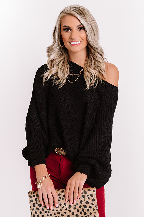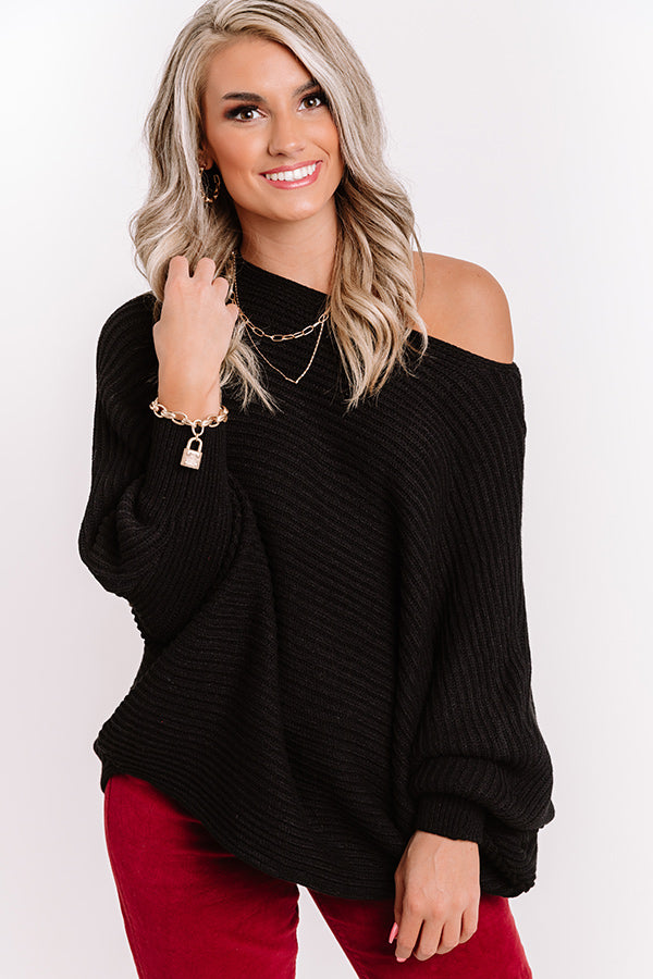 Dance with your best gals all night long in our adorable black 'Jazz Club' sweater top featuring soft lightweight tight knit material with horizontal ribbed texturing, a wide rounded neckline that can be worn off one shoulder, long loose sleeves that taper into fitted forearm cuffs, and an ultra slouched silhouette that falls into a rounded hemline!