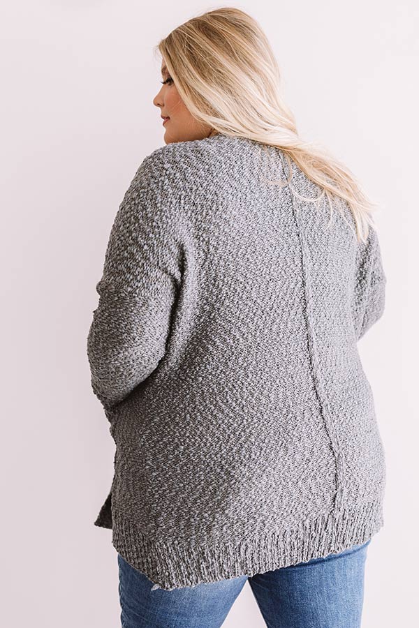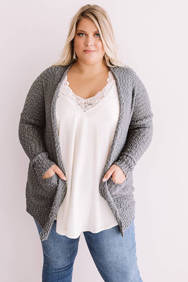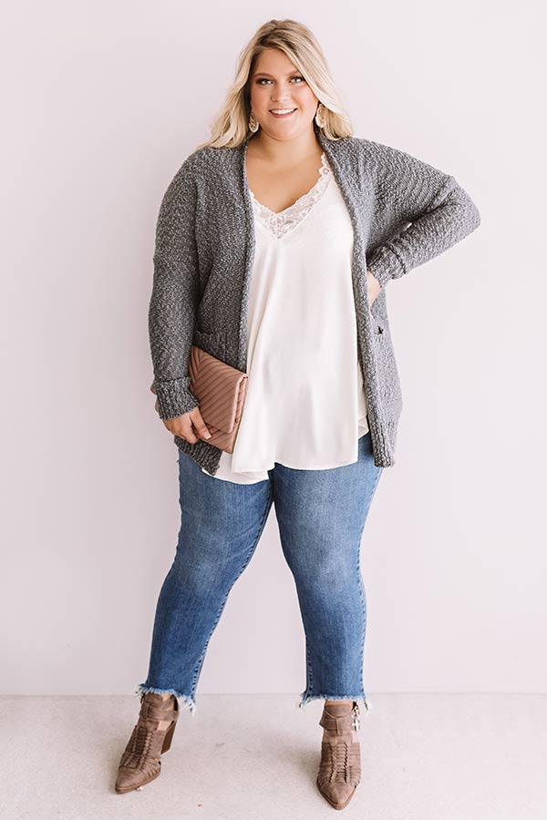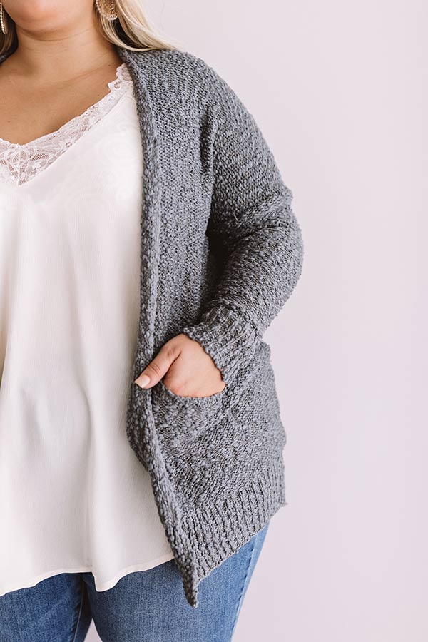 Jetsetter Popcorn Knit Cardigan In Dark Grey Curves
