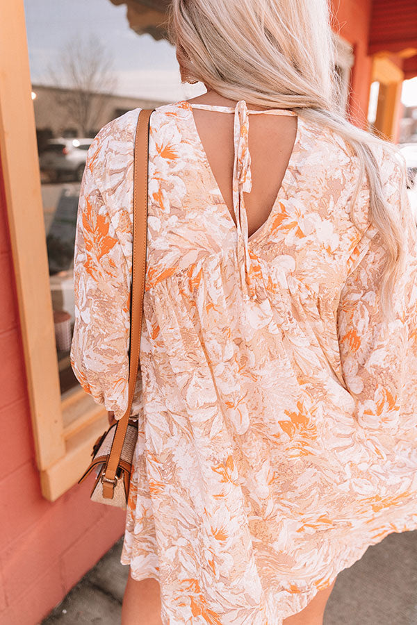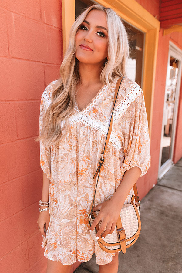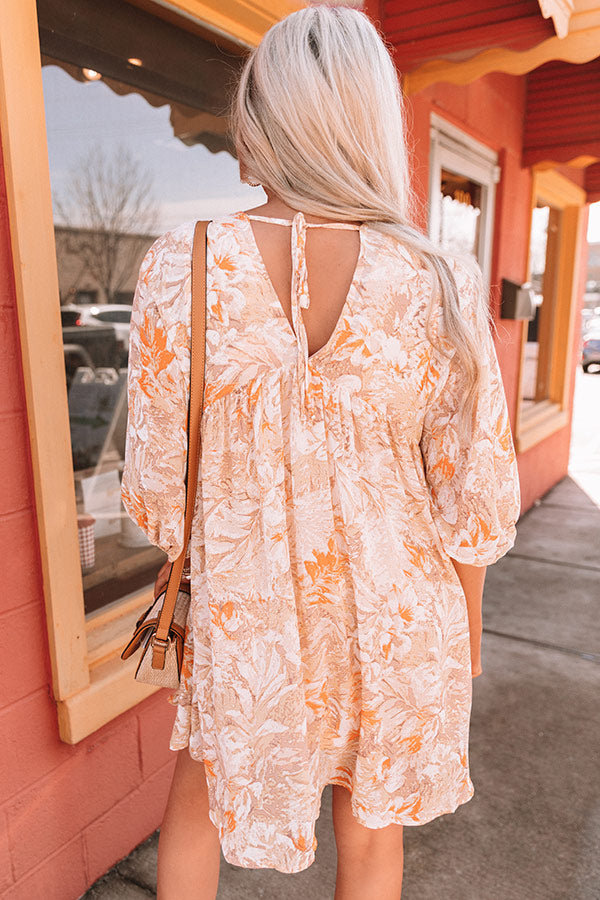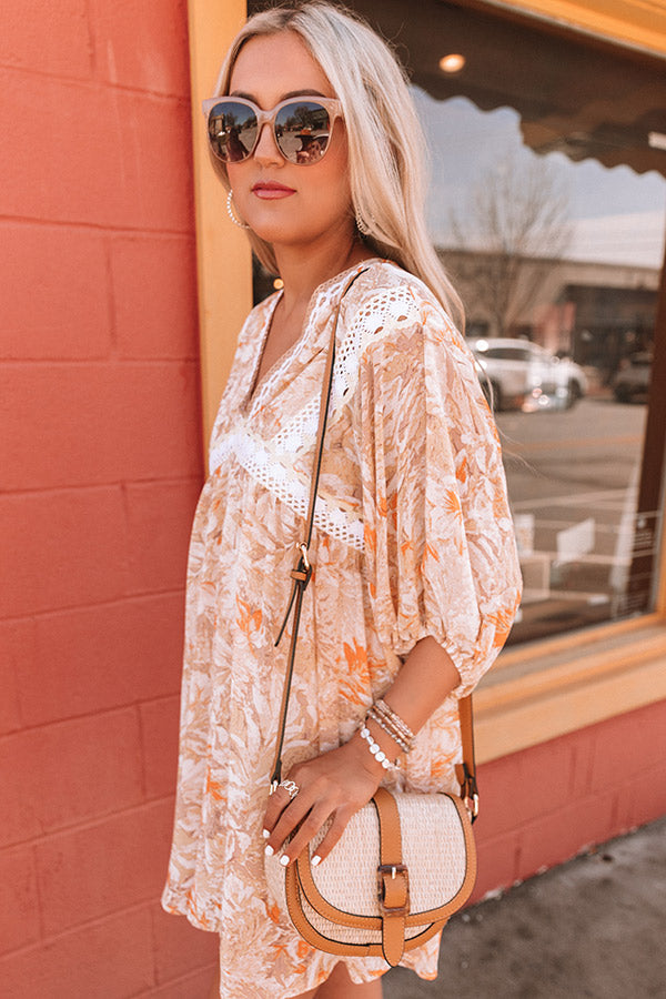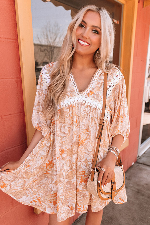This adorable dress is so versatile you can wear it to Easter Sunday AND for jetting away to a Fiji vacay! It features lightweight breezy material patterned with a stunning yellow hued floral print, a v-cut neckline and back with a tie closure, intricate crochet seam and trim detailing, bubble half sleeves with fitted elastic banded cuffs, and an ultra relaxed babydoll silhouette that falls into an uneven mid-thigh length hemline! We have styled this beauty with a woven platform heel and brown crossbody, but you can also wear it with "The Carolina Heel in Gold" and our "Spread Your Wings Butterfly Hair Clip Set!" Measurements