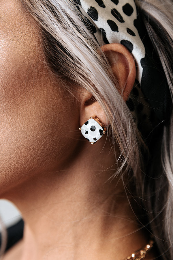 Add a dainty tough to your look with our adorable 'Just For Tonight' earrings featuring square white studs patterned with small black polka dots!