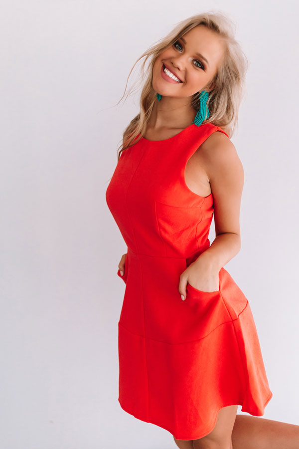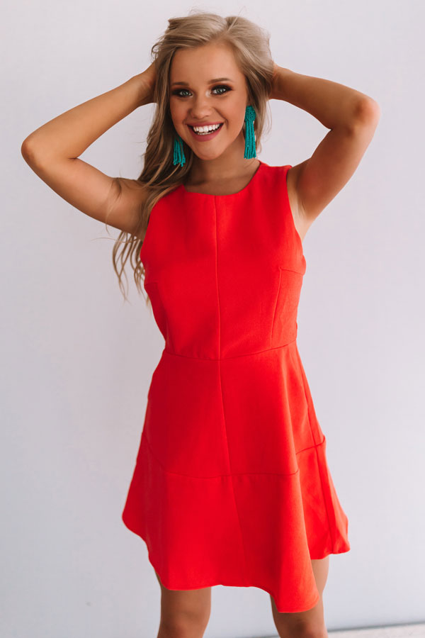 This mid-thigh dress may be all one color, but the seam patterns and flared bottom give it a unique style! The 2-inch straps, zip-up back, and rounded neckline make it perfect for an elegant summer dinner. Throw on a pair of chic heels with it and just keep dancing! Measurements