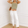 - A high waistline with belt loops, a hidden zip fly, and button closure