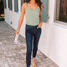 Life is more than just fitting into your jeans, but we believe you will LOVE the look and feel of our trendy 'Burke' skinnies featuring lightweight dark wash denim material, four pocket cuts, a hidden zip fly with a button closure, a high waistline with belt loops, and a flattering form fitting silhouette that falls into frayed ankle-length hemlines!