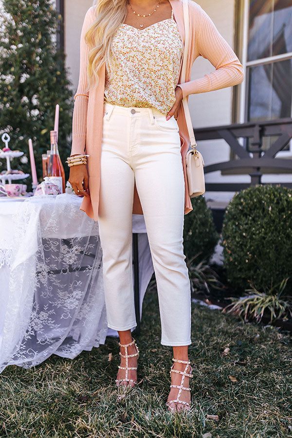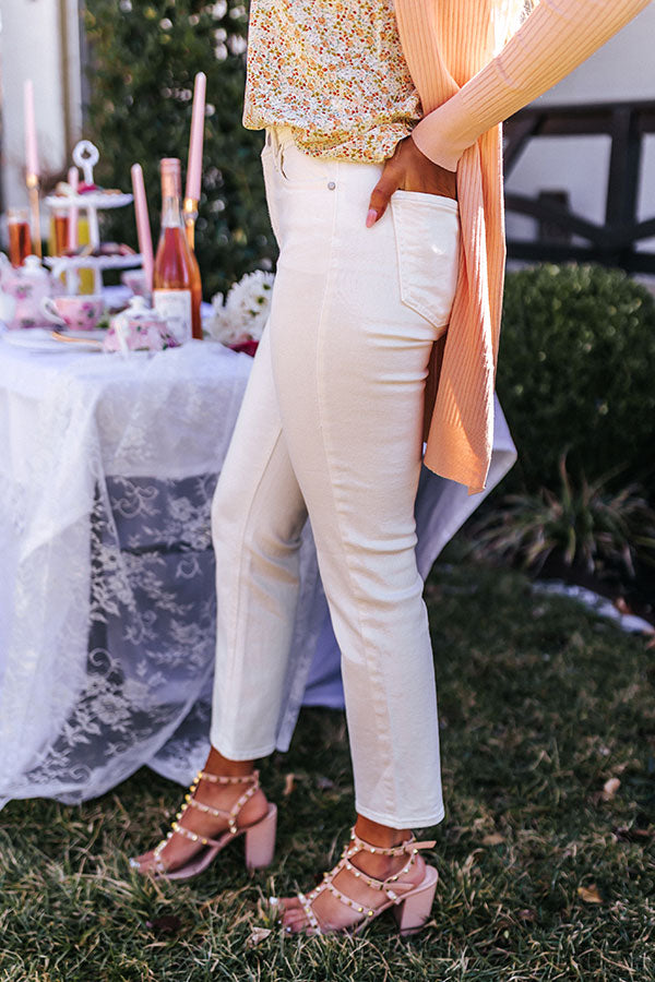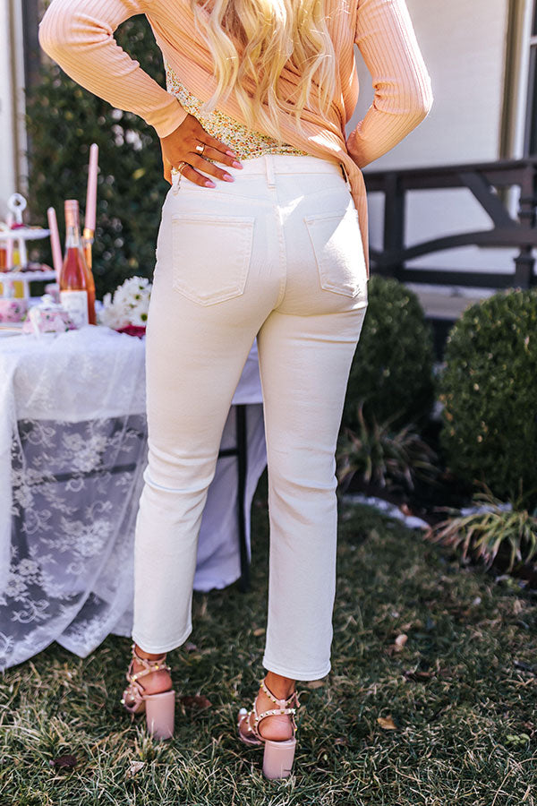 You won't find a more timeless piece for your seasonal wardrobe than our chic white 'Esley' pant featuring lightweight comfortable material, a high waistline with belt loops, a hidden zip fly with a button closure, a classic four-pocket cut, and a flattering figure hugging silhouette that ends in a straight ankle-length hemline!