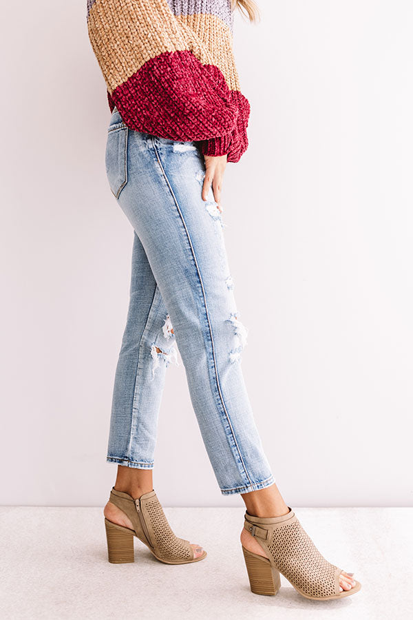 Life is more than just fitting into your jeans, but we believe you will LOVE the feel and look of "The Blakely" skinnies with their high waist, relaxed fit, distressed detailing, light wash color, ankle length hems, 5 pocket cut, belt loops, and a hidden zip with a button closure! These trendy bottoms will take your from season to season when you wear with your favorite open toed heel and tank top in the summer and with booties and a sweater in the fall!