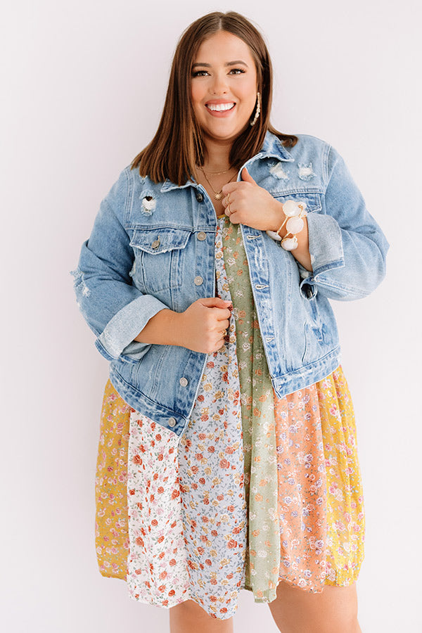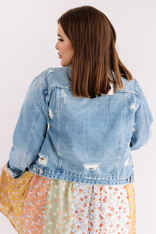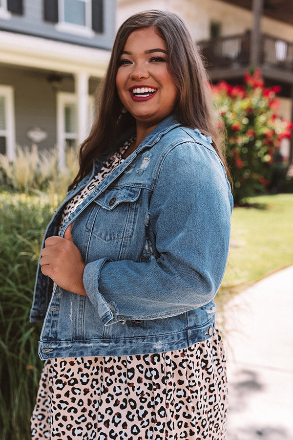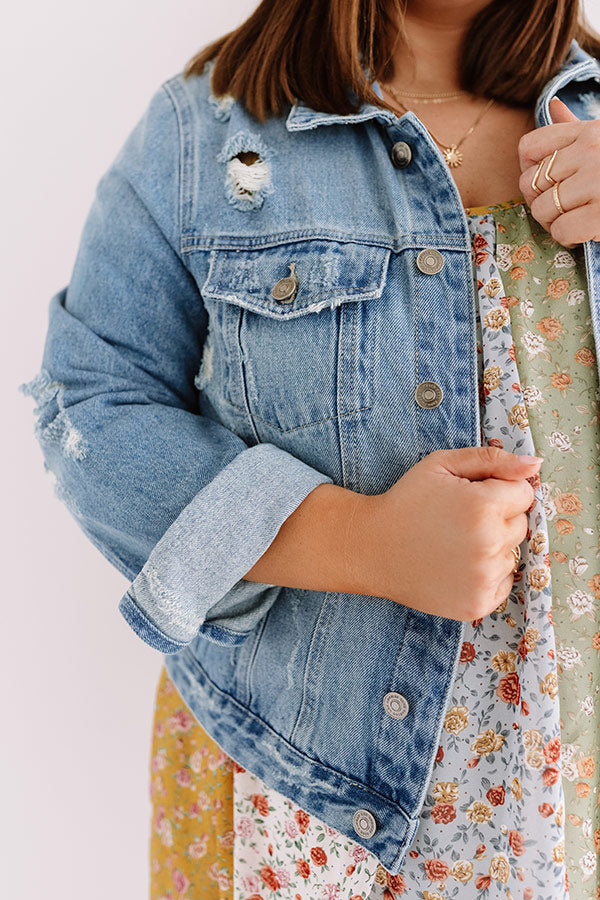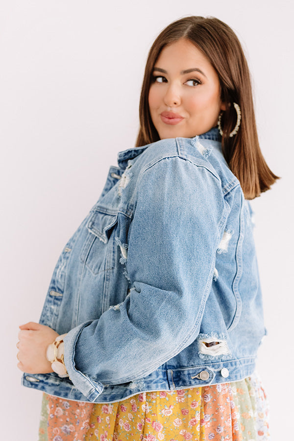 Plus Size - Your seasonal outfits will be envied when you complete your look with "The Brooke" denim jacket featuring lightweight light wash material, subtle distressed detailing, a collared neckline, two accent chest pockets with flap closures, a straight cropped raw cut hemline, a button down front, and long sleeves that can be rolled! You can wear this trendy piece with a camisole or summer dress underneath or you can put it over a fall blouse to add some edginess to your pristine transitional style!