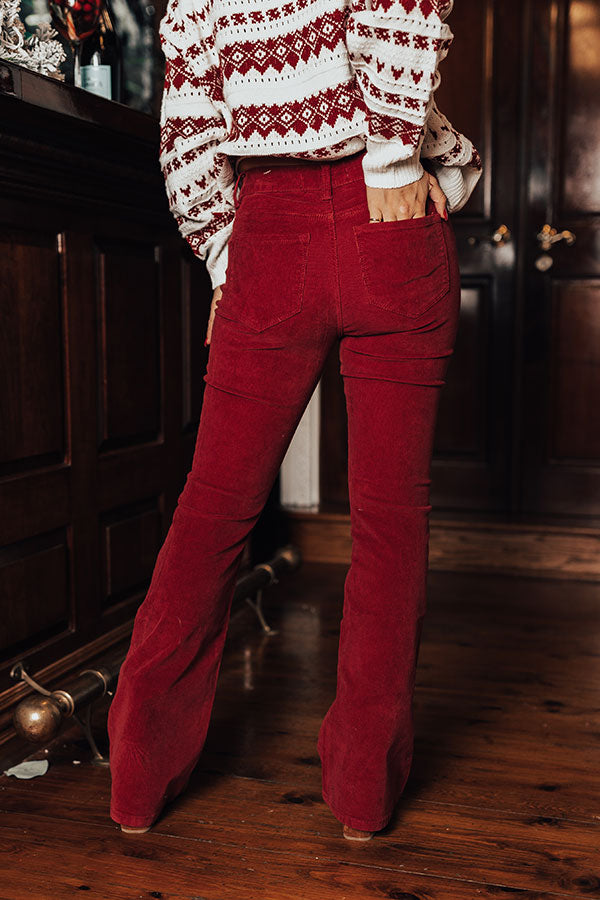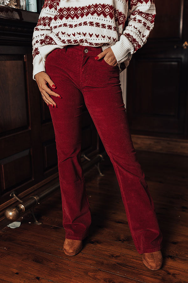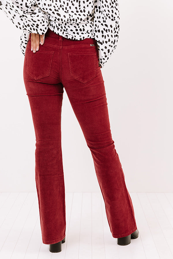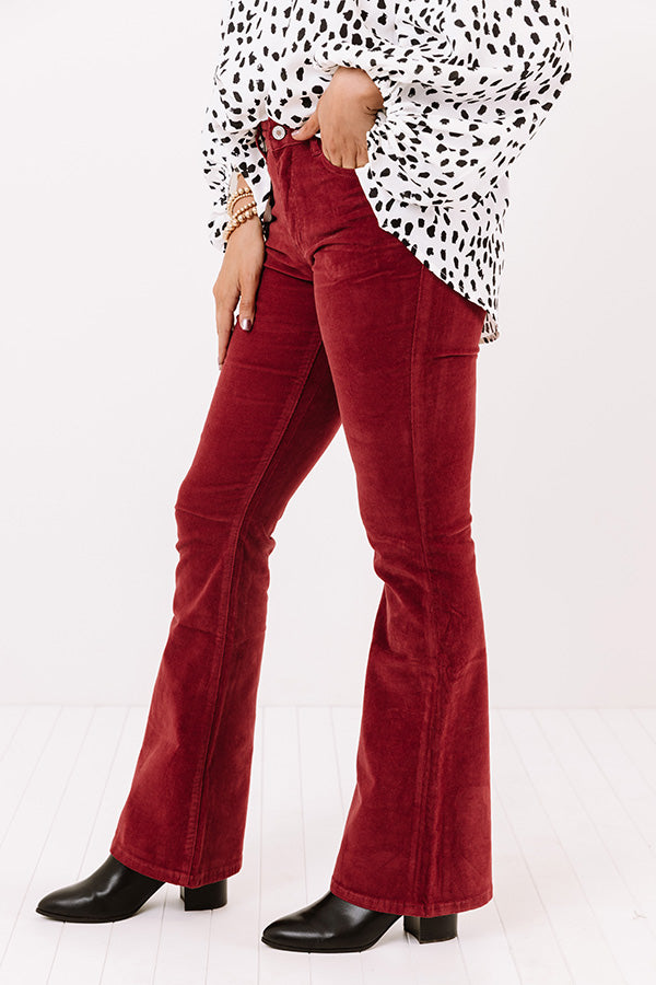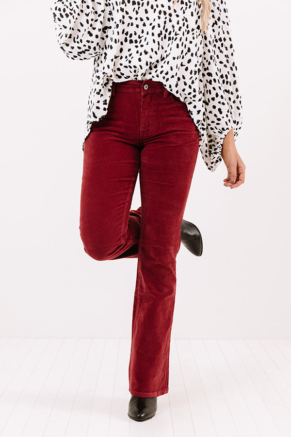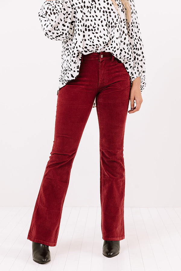 Stay groovy all year round with our adorable wine colored 'Sheela' flares featuring lightweight stretchy corduroy material, high waistline with belt loops, a hidden zip fly with a button closure, four pocket cuts, and a flattering form fitting silhouette that falls into boot cut floor-length hemlines! Measurements