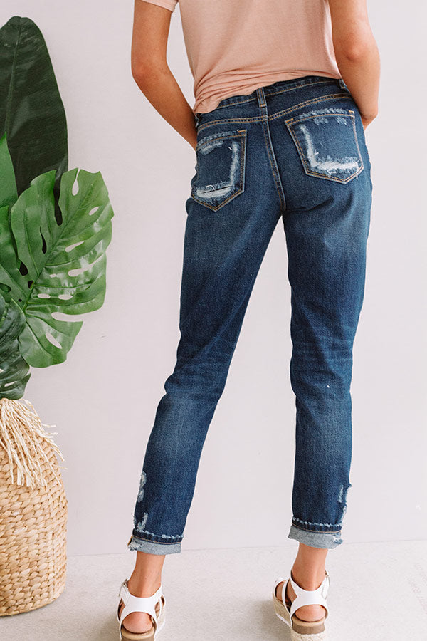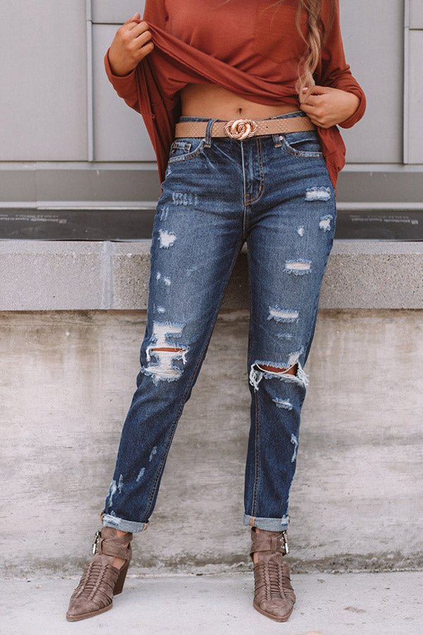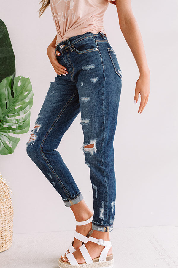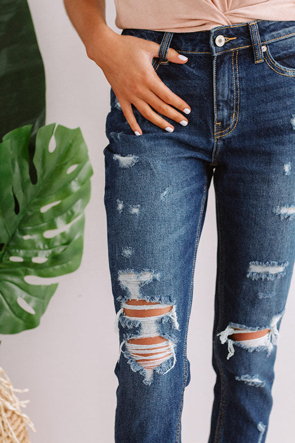 KanCan The Tessa High Waist Distressed Girlfriend Jean In Dark Wash