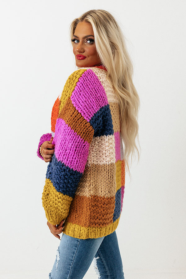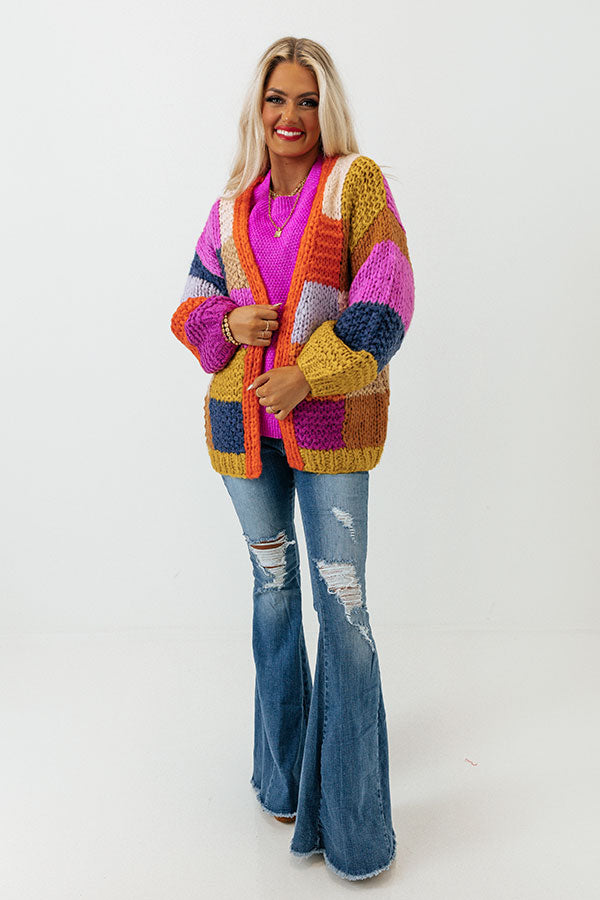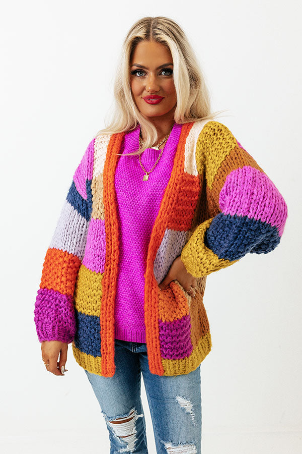 - Layer your look with a pop of colorful coziness in this sweet cardigan!