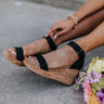 Walk a fashionistas walk in our gorgeous black 'Kaya Nubuck Wedge' featuring an over-the-foot strap, a close heel with a Velcro ankle strap, rounded open toes, a 3.5-inch heel, and a lightweight silhouette! This wedge runs more true to size.
