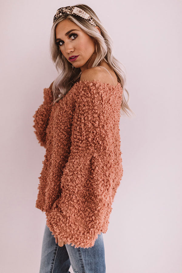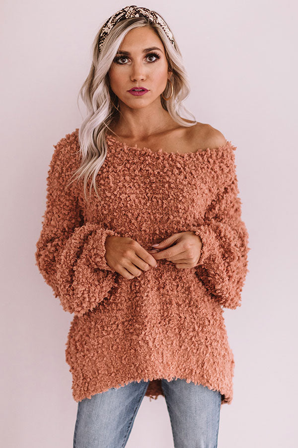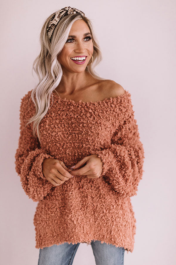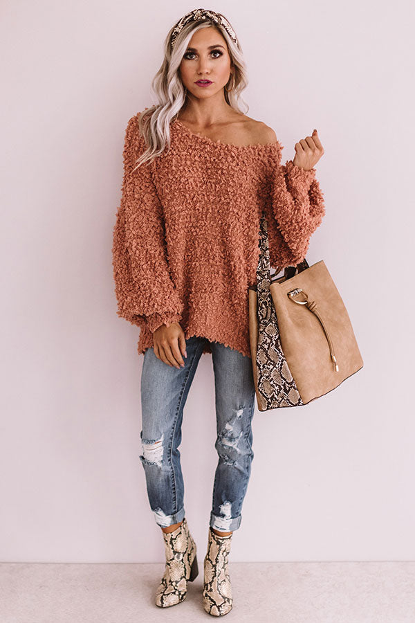 Our light rust colored "Keep It Close" sweater provides the perfect coverage to comfortably ease into the colder weather with its soft lightweight popcorn knit material with ribbed texturing, a wide scooped neckline that can be worn to one side, long oversized bishop sleeves with fitted cuffs, and a relaxed silhouette that falls into a straight hemline! We have styled this piece with some distressed ankle skinnies and a snake print headband, tote, and bootie, but you can also wear it with some charcoal flares and "The Seraphina Faux Leather Wedge in Grey!" Measurements
