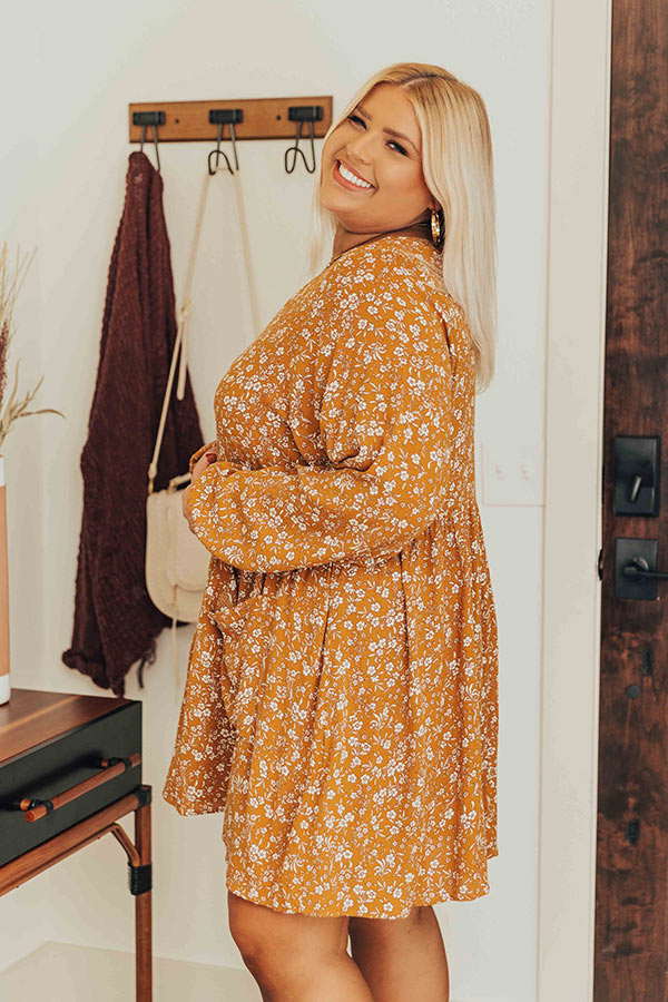 Keep Smiling Floral Shift Dress in Dark Mustard Curves