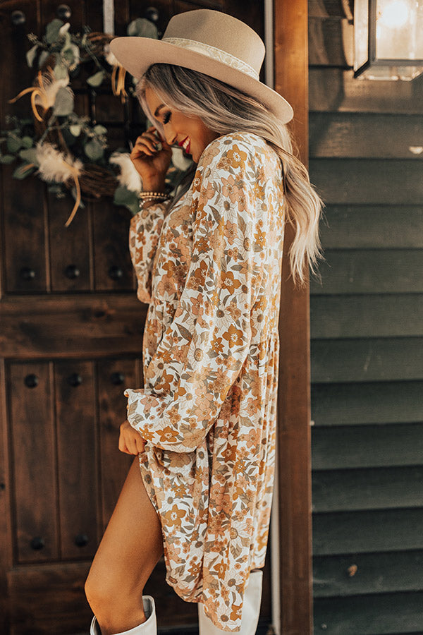 Keep Smiling Floral Shift Dress in Golden Honey