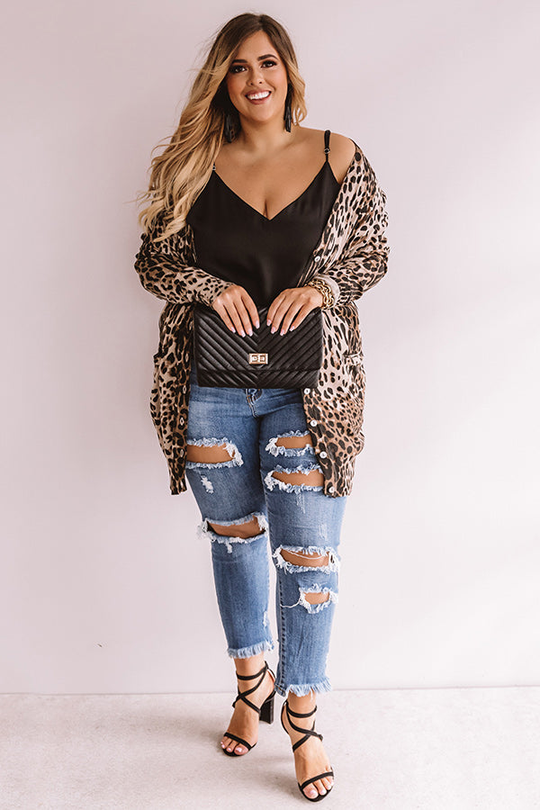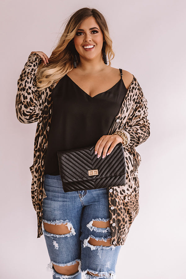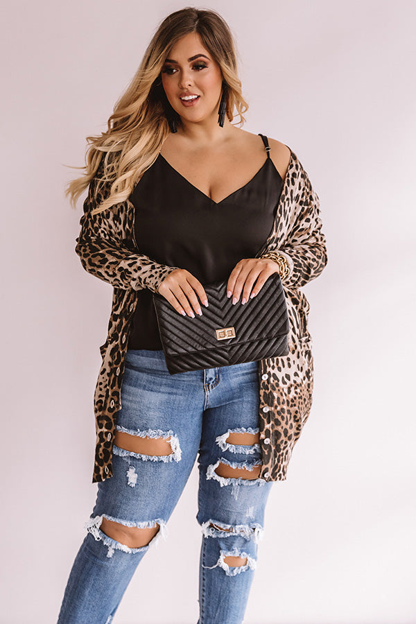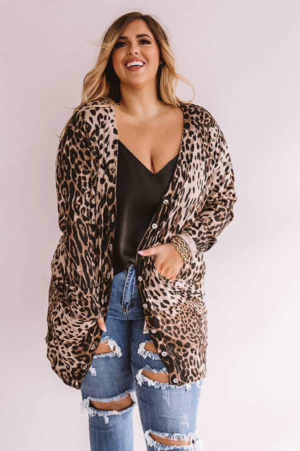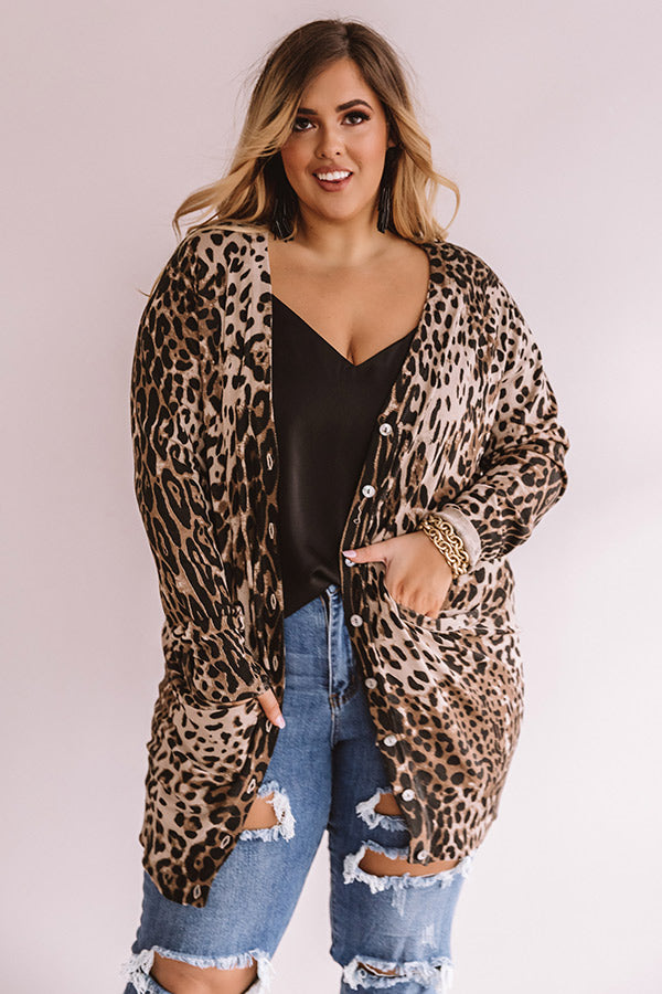 Plus Size - Stay warm and cozy in our "Keep The Rhythm" cardigan featuring soft lightweight tight knit material patterned with a bold black and brown leopard print, subtle ribbed texturing, long semi-loose sleeves with fitted cuffs, hidden side pockets, and a relaxed button up front silhouette that falls into a straight mid-thing length hemline! You can style this versatile piece with just about anything from a basic tank to a sweater, jeans to skirts or dresses, booties to wedges or sandals, clutches to totes, and hats to earrings! Measurements