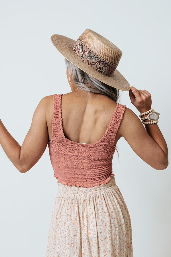 Keeping Cool Smocked Crop Tank In Rustic Rose