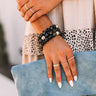 The 'Kendley 12' features a 7.25" stretch black beaded bracelet finished with a gold tag! Each bracelet sold separately.
